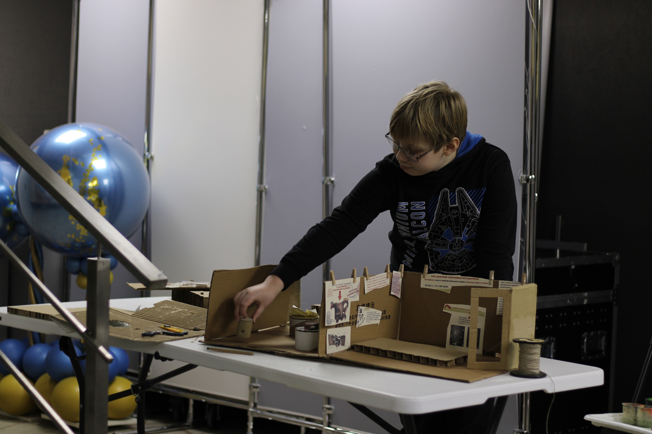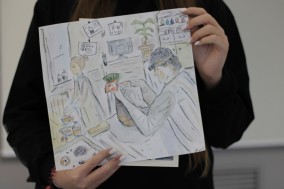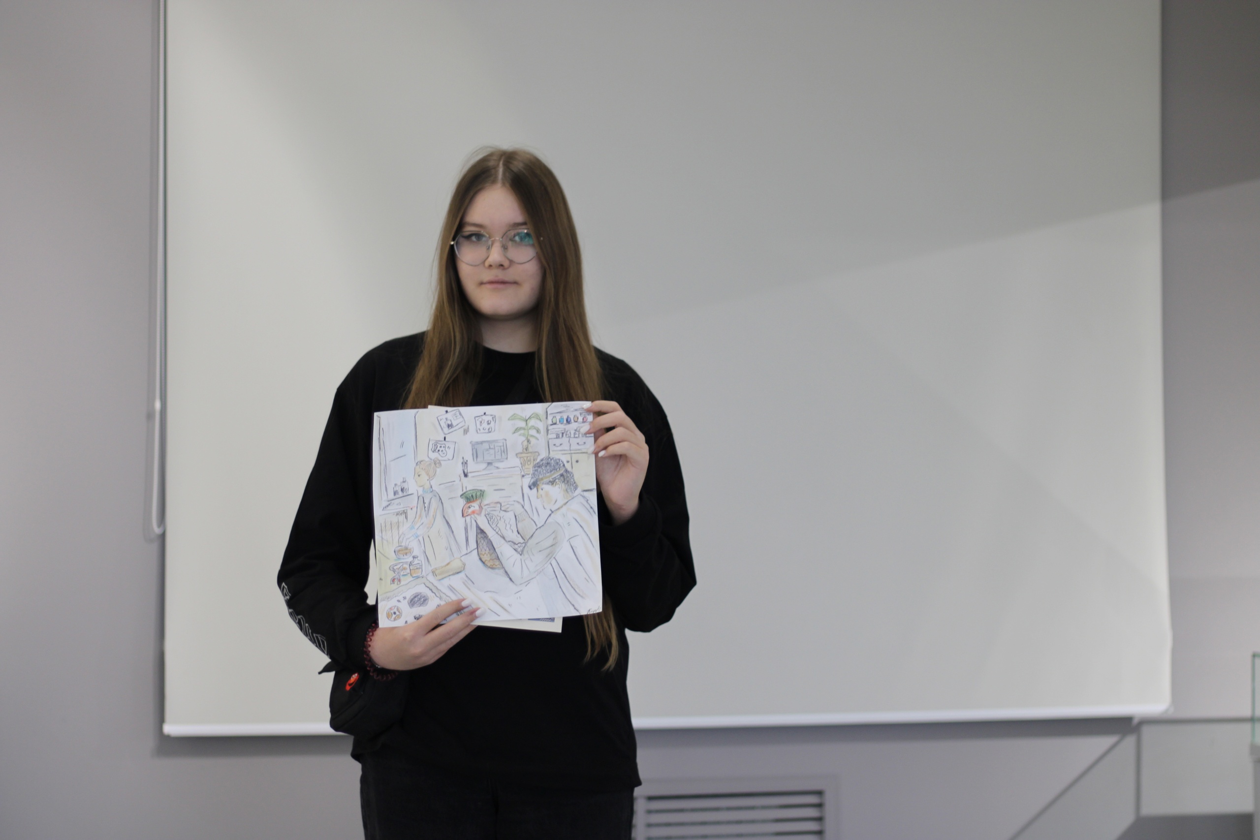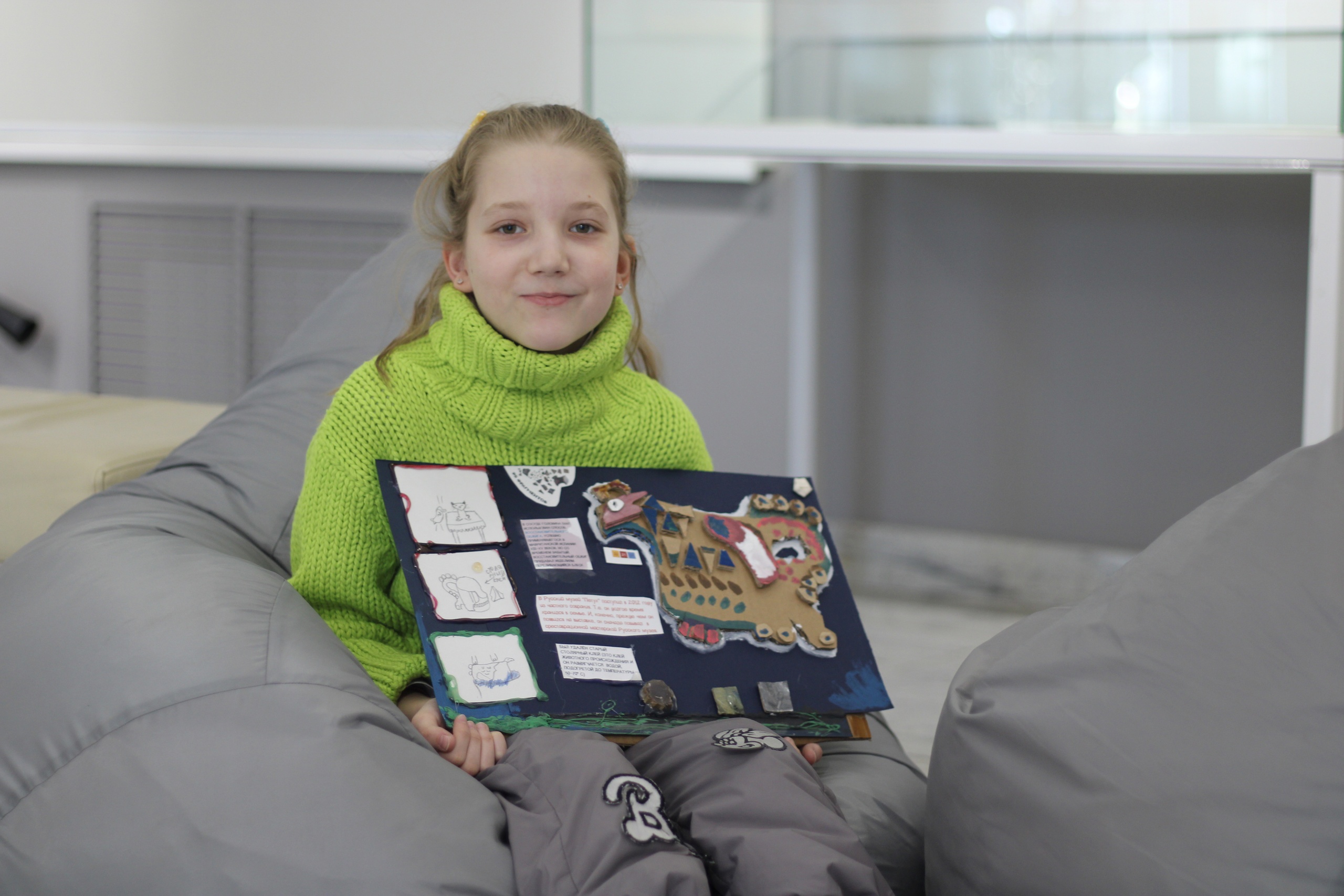 На мастер-классе ребята оформляли свои впечатления в рисунок или коллаж с заметками о реставрации. В ряде работ можно заметить комикс о бытовании сосуда в домашних условиях и его последующей реставрации. В коллажах ребят можно заметить фигурку сосуда в технике многослойной аппликации из картона и бумаги, рисунки баночек с пигментами и имитацией столярного клея. Ещё есть классная идея с котом реставратором, есть акварель, вдохновлённая фотографиями с портала «Служба реставрации музейных ценностей» и целый макет мастерской тоже придумался!