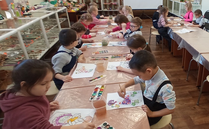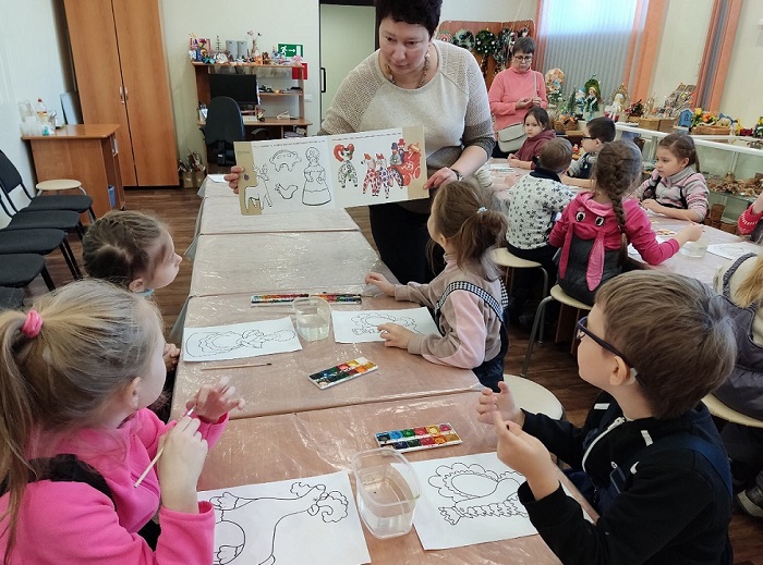В интерактивной программе «Народное искусство из собрания Русского музея» и на канале «Русский музей зумерам» дошкольники увидели старинные дымковские игрушки, находящиеся в коллекции Русского музея, и узнали какой узор нужно нанести при росписи игрушки.