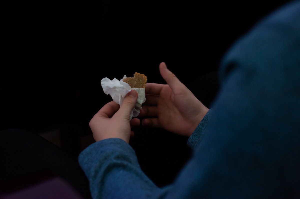 Завершился урок минутой молчания. Все участники получили по кусочку хлеба в напоминание о тех страшных днях.