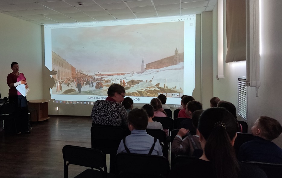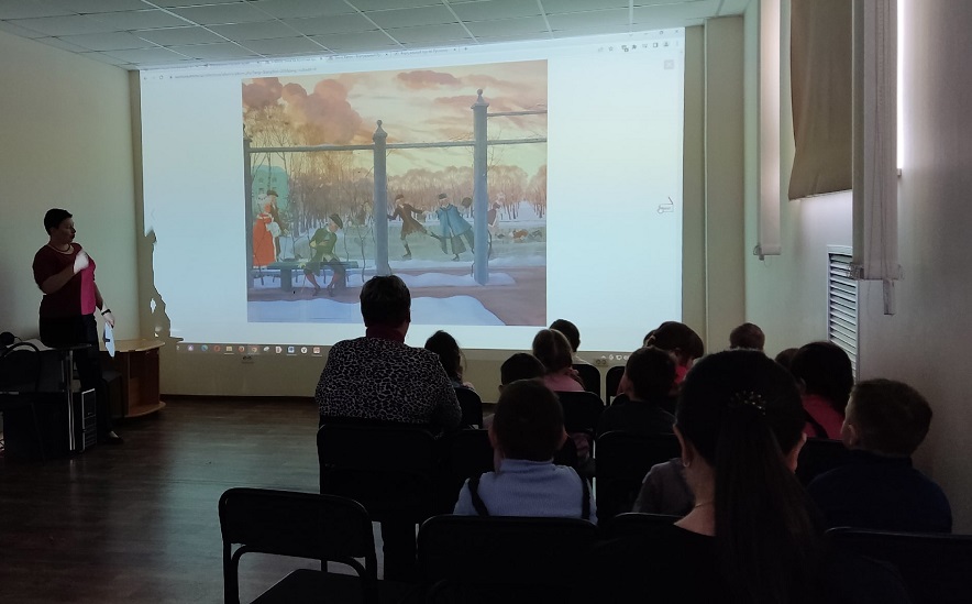 Сегодня дети рассмотрели несколько картин из коллекции Русского музея, на которых изображена зима. Это полотна Василия Сурикова и Жерара Делабарта, Архипа Куинджи и Ивана Шишкина, Павла Федотова и Никифора Крылова, Наталии Гончаровой и Константина Сомова, и некоторых других авторов.