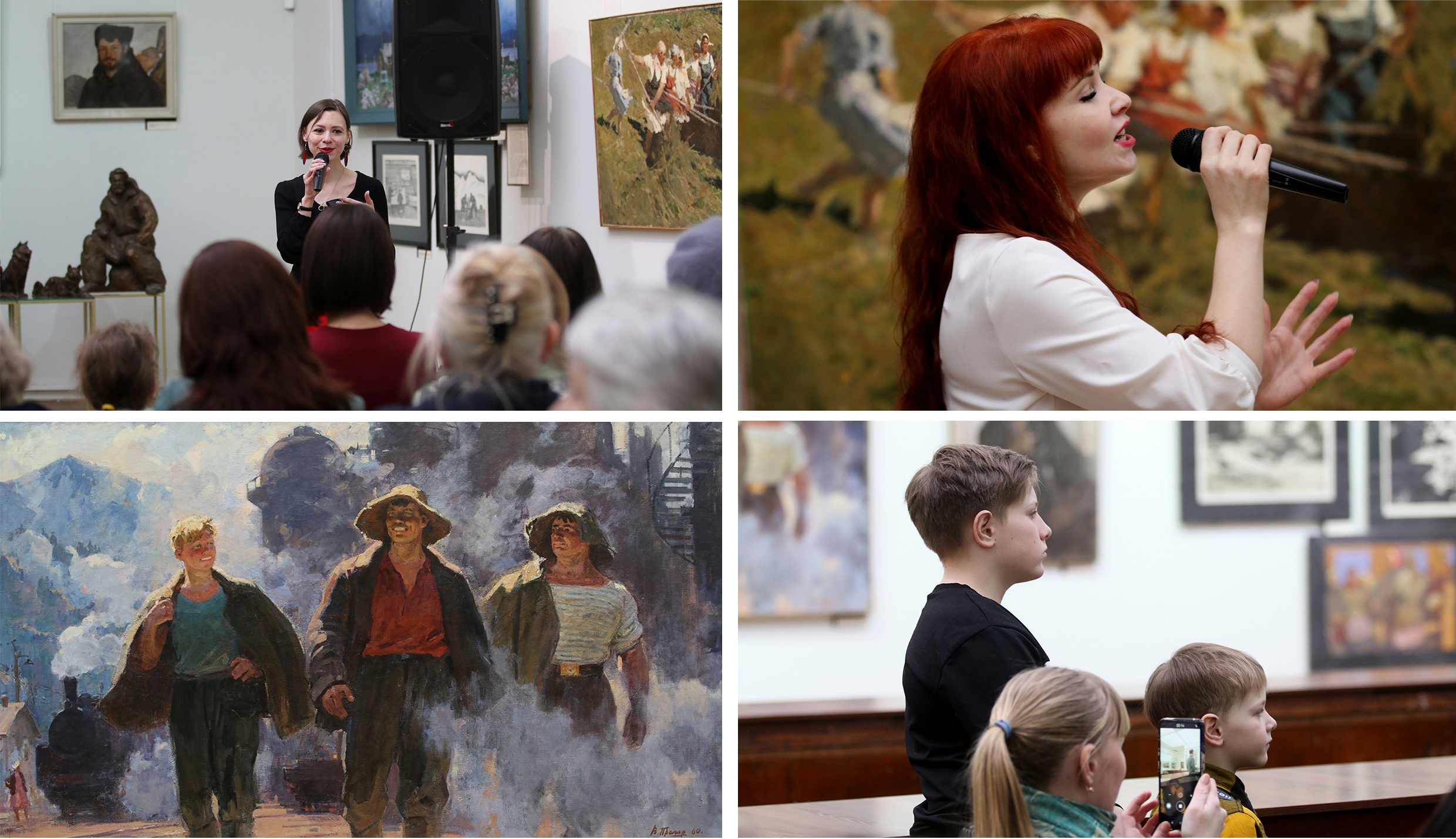 Выставка «Нам песня строить и жить помогает!» собрала произведения 1950-х-1960-х годов советских художников из коллекции Нижнетагильского музея изобразительных искусств, а также иллюстрацией послужили репродукции работ из Медиатеки Русского музея.