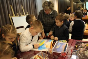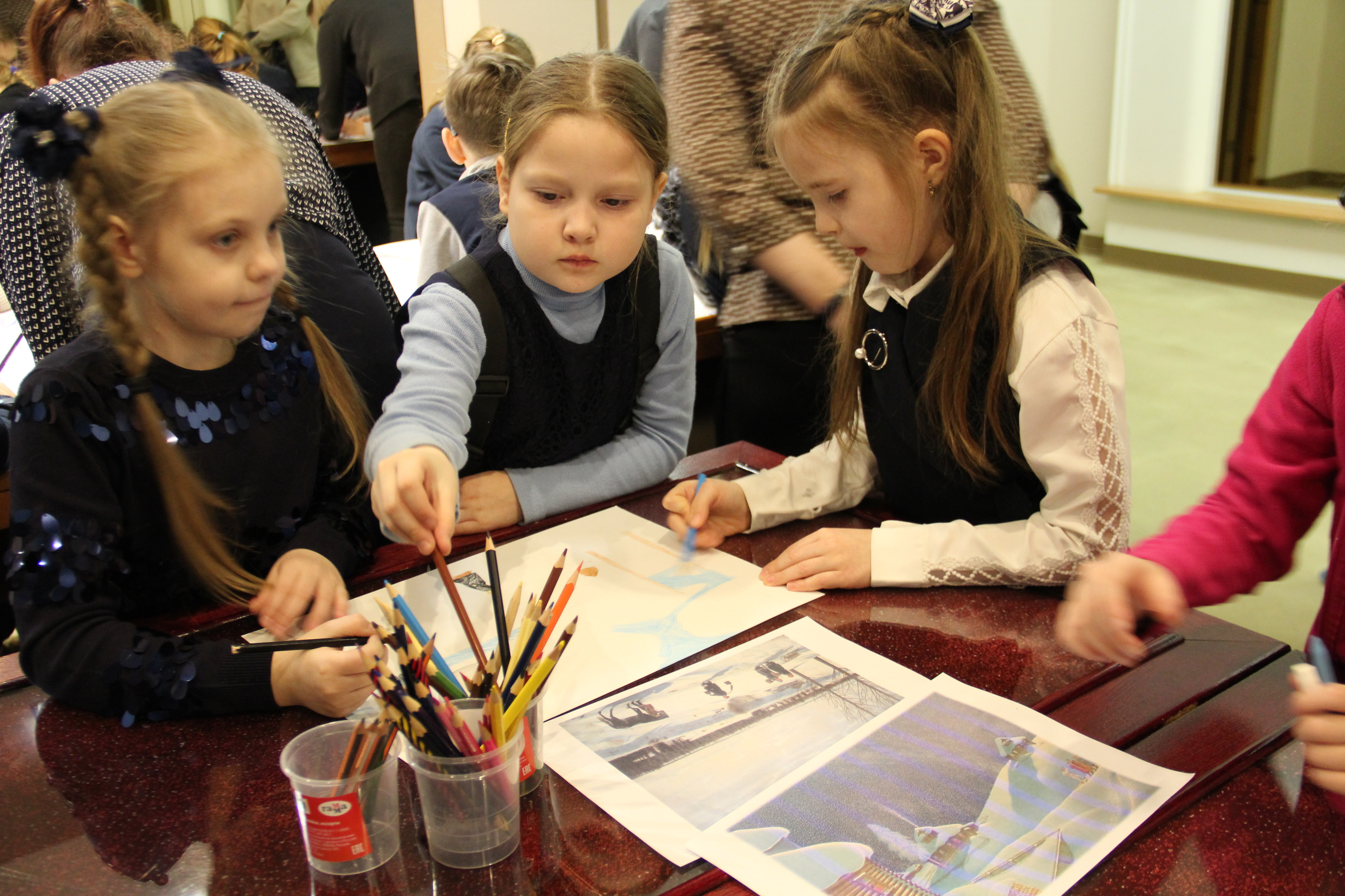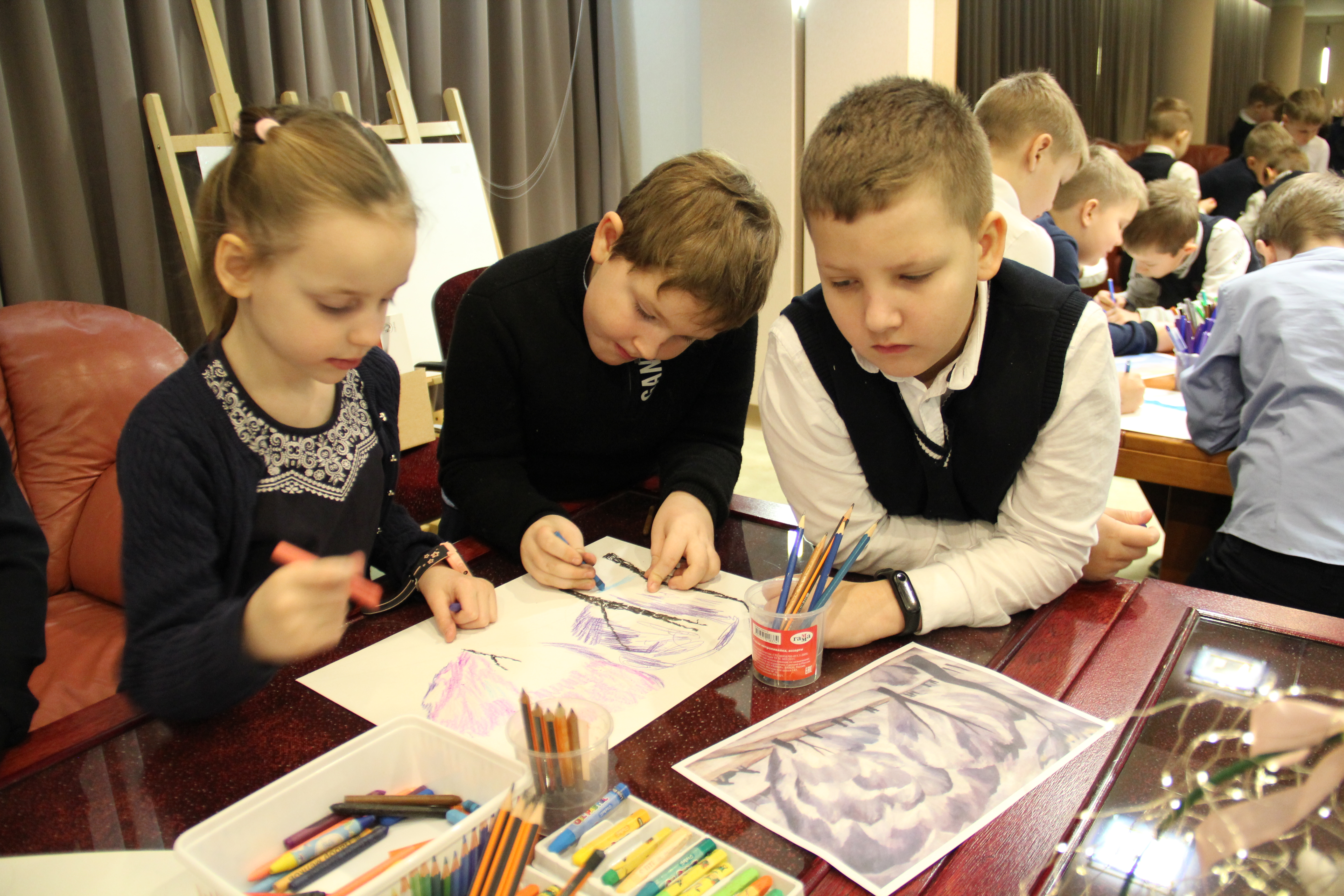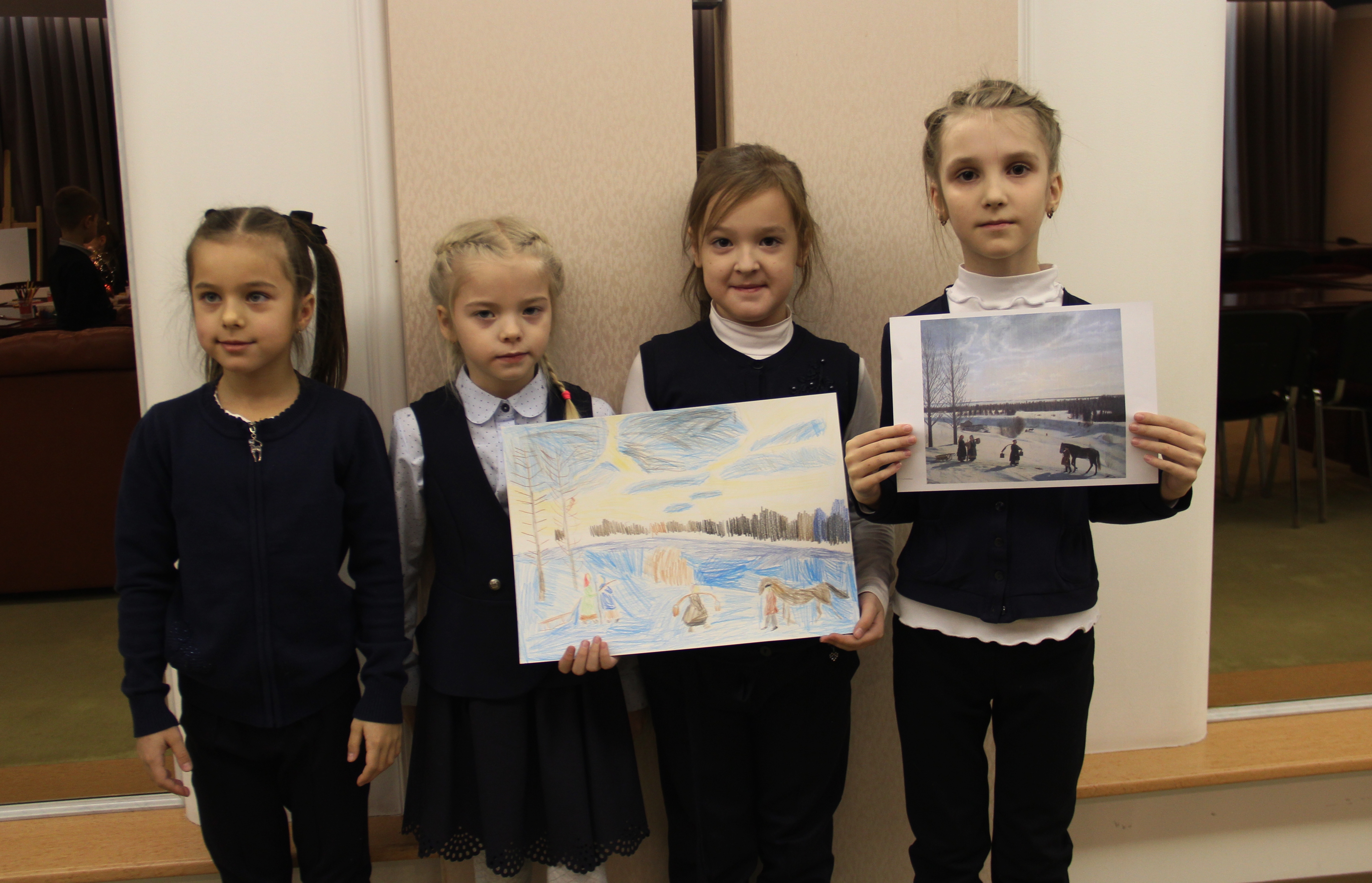 Что бы нарисовать зимний пейзаж, детям были предложены разные материалы: пастель, гуашь, акварель, цветные карандаши и фломастеры. У каждой группы была картина для подражания из коллекции Русского музея. Задача была не только сделать похожей, но и внести свои творческие находки. Ребята увлеклись, прочувствовали, что работа с разными материалами даёт интересные эффекты. И отметили, что набор зимних цветовых оттенков намного богаче и ярче.