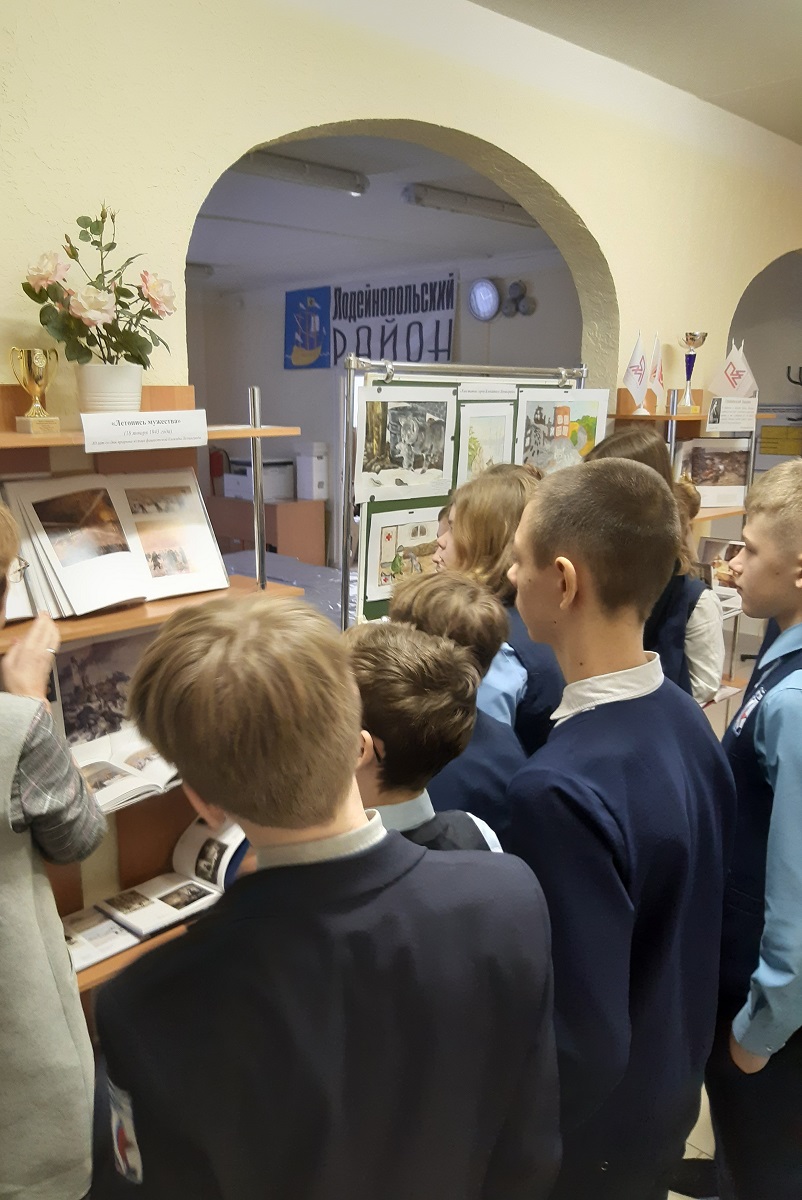 После мероприятия был проведен обзор выставки репродукций с картин Русского музея "Летопись мужества" и выставки рисунков учащихся города "Хвостатые герои блокадного Ленинграда".