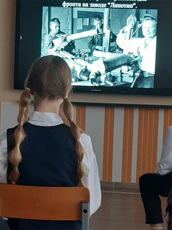 Ребята узнали о тяжелых днях войны, о детях, которые жили в блокадном Ленинграде, о том, как маленькие ленинградцы в блокадном городе сражались с голодом, холодом, смертью. Как с первых дней войны старались помочь взрослым: вставали за станки вместо ушедших на фронт родителей, строили оборонительные укрепления, ухаживали за ранеными, собирали металлолом, необходимый для изготовления патронов и снарядов. Также ребята услышали историю ленинградской школьницы Тани Савичевой, которая во время блокады вела дневник, содержащий девять страшных строк: каждая строка посвящена смерти одного из близких. Вниманию детей был представлен видеоролик "Дневник Тани Савичевой".