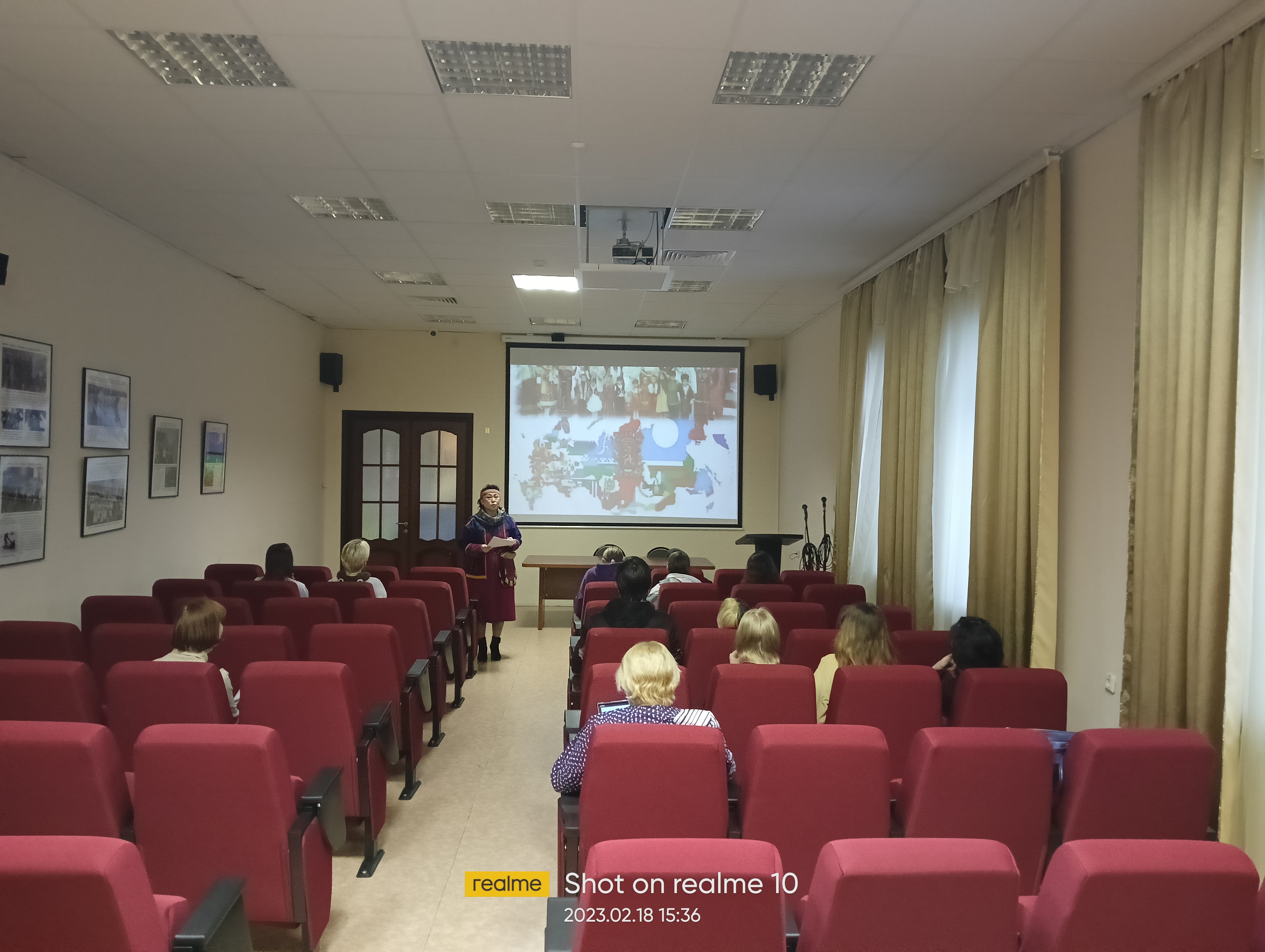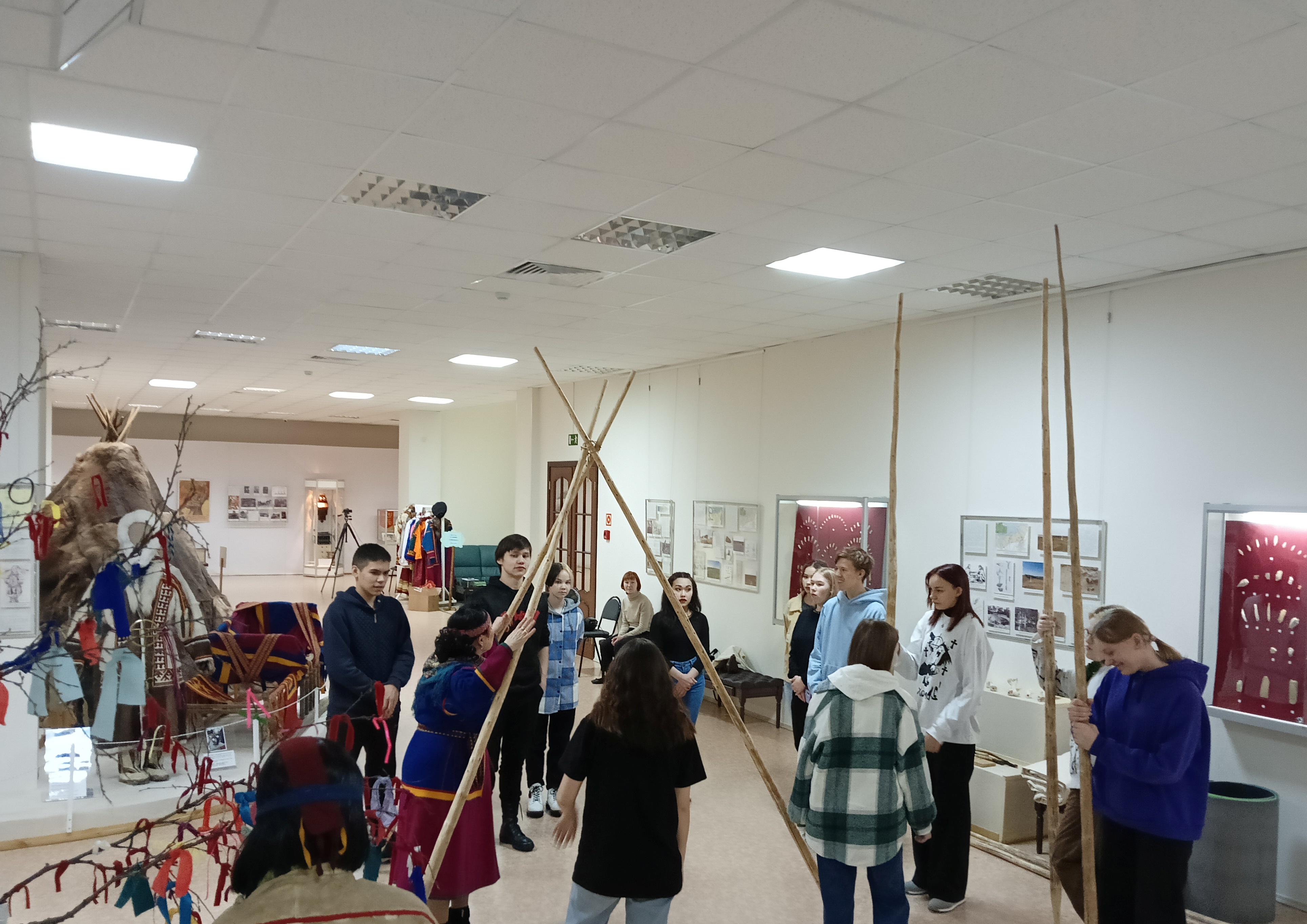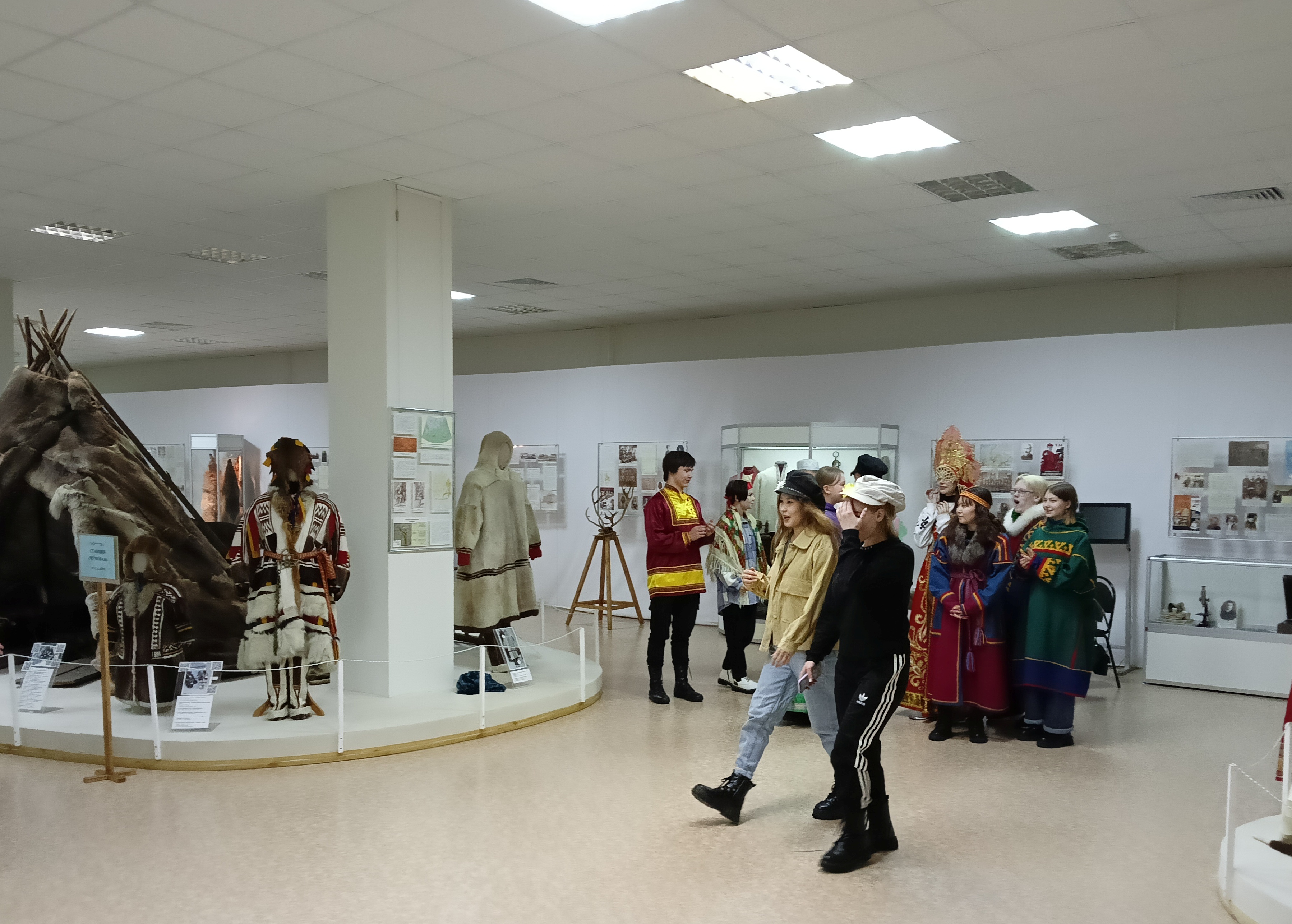В рамках Международного дня родного языка в краеведческом музее прошла игра-путешествие «Этнокультурная мозаика». Участники прошли по интересному и увлекательному маршруту со станциями, узнав много нового о культуре трёх народов: ненцев, русских и коми. На станции «Радуга дружбы» с помощью ИОЦ «Русский музей: виртуальный филиал» посмотрели видеоролик «Женский народный костюм в России XVIII-XX вв», где познакомились и удивились разнообразию в локальных особенностях покроя и характере декорирования различных элементов одежды.». Построили чум на станции «Чумовая» и поговорили на ненецком языке. «Игротека в этностиле» познакомила с традиционными ненецкими и коми-ижемскими играми с косточками «Поймай оленя», «Перегони упряжку», а под мелодичный звон колокольчика поиграли в «Маленкова» (Жмурки). Станция «Сломай мозг» была связана с великим и могучим русским языком, а точнее с известными фразеологизмами. Участники, посетившие эту станцию, теперь знают, что известное выражение «Злачное место» изначально имело совсем другой смысл, а именно было связано с основной пищей – хлебом. Если на станции «Радуга дружбы» ребята познакомились с большим разнообразием женского народного костюма, то на станции «Этномода» они смогли ее примерить, устроив шикарное дефиле. «Этнодвиж» собрал всех вместе на танцполе в зажигательном флэшмобе под ритмы народной музыки. Участники игры-путешествия «Этнокультурная мозаика» получили массу положительных эмоций, хорошее настроение, а наградой для всех стали новые знания.