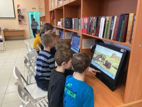 21 февраля сотрудник виртуального филиала Русского музея Евгения Куликова организовала для ребят компьютерную игру "России воины - сыны". После небольшого экскурса по виртуальной картинной галерее славы, участники мероприятия прошли квест-игру из медиатеки виртуального филиала Русского музея. В ходе игры ребята знакомились с картинами великих русских художников на военную тематику, вспомнили названия родов войск, одержали победу в морском бою и сокрушили замок противника метким выстрелом из пушки. За успешное прохождение всех этапах квеста каждому участнику мероприятия был вручён диплом и сладкий приза.