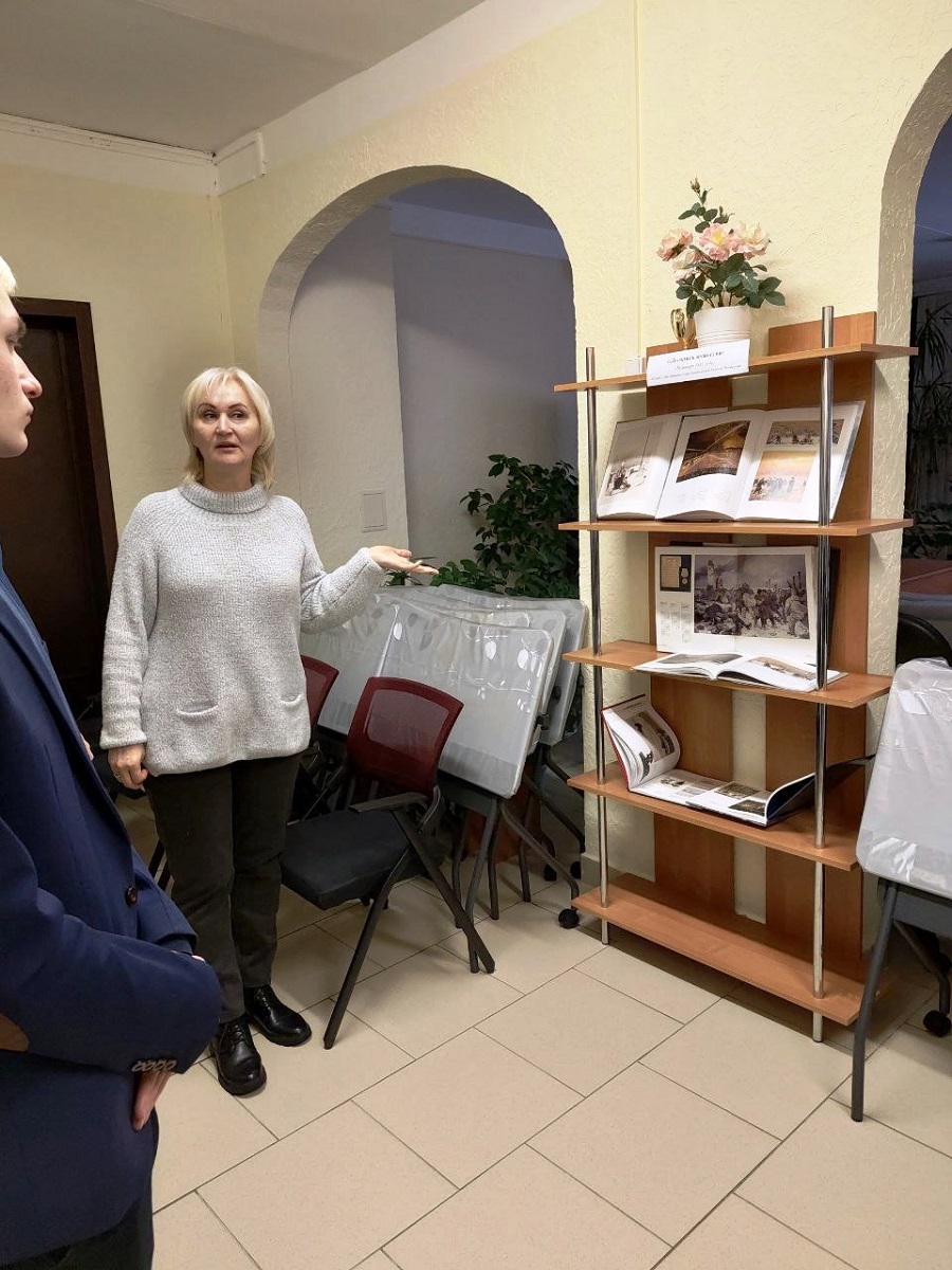 После мероприятия был проведен обзор выставки репродукций с картин Русского музея "Летопись мужества" и выставки рисунков учащихся города "Хвостатые герои блокадного Ленинграда".