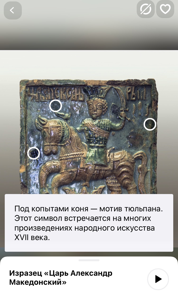 Мультимедиа-гид «Народное искусство в Русском музее» доступен на русском и английском языках в бесплатном приложении дополненной реальности «Артефакт» и на официальном сайте приложения в сети интернет.