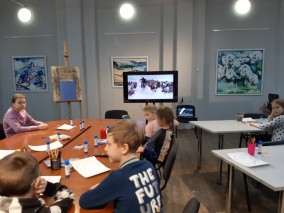 В Калининградском областном музее изобразительных искусств прошло занятие, на котором ученики художественной студии "Цвет, линия, ритм" познакомились с традициями празднования Масленицы на примерах работ художников из коллекции Виртуального Русского музея - «Масленица» Бориса Михайловича Кустодиева и «Народное гулянье во время масленицы на Адмиралтейской площади в Петербурге» Константина Егоровича Маковского.
