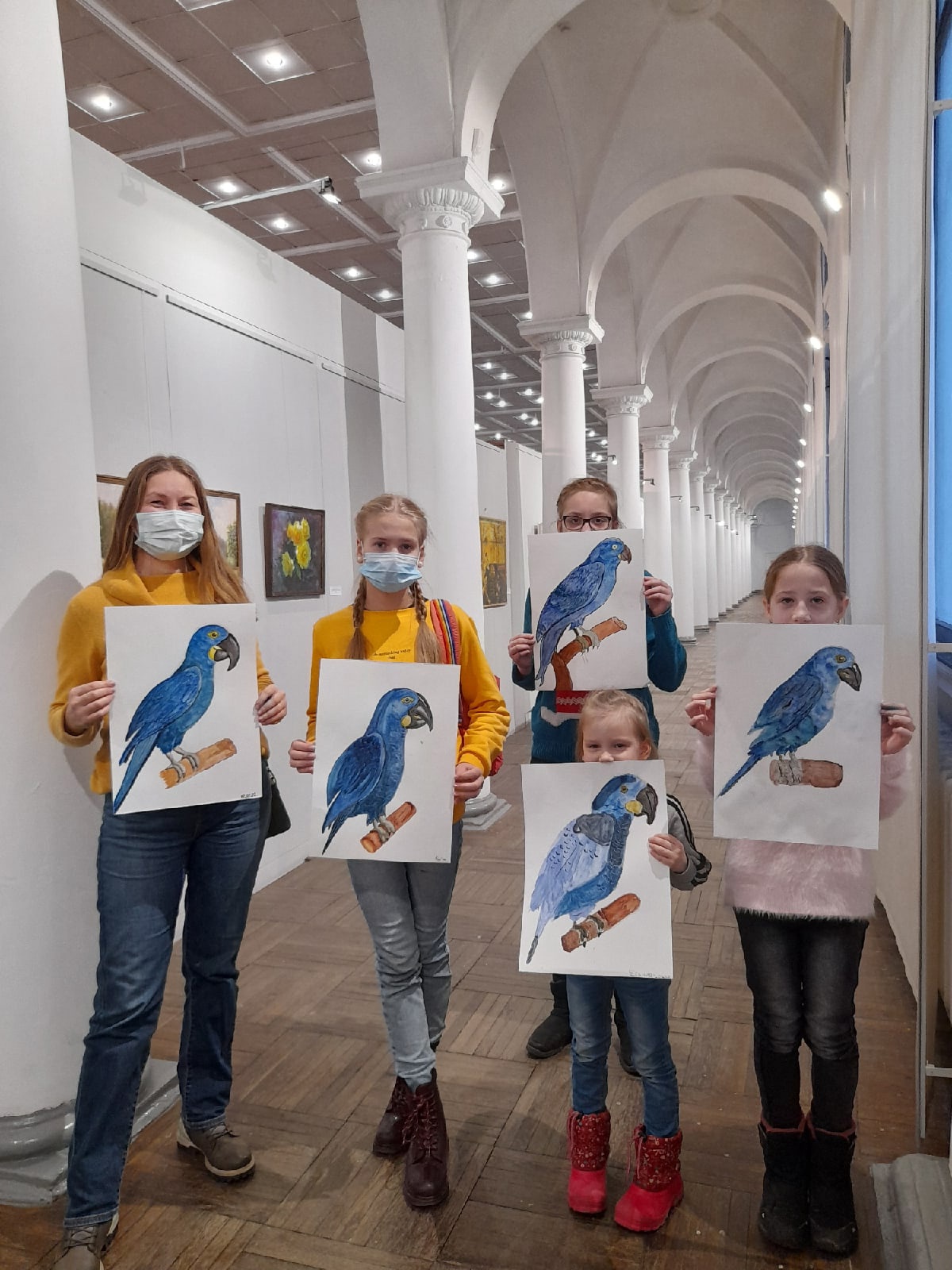 Во вторник 22 марта гости Калининградского музея изобразительных искусств отправились в удивительное путешествие по экзотическим краям, попробовав себя в роли художников-натуралистов и нарисовав акварелью и линерами попугая Ару по мотивам работы Павла Михайлова в рамках проекта «Виртуальный Русский музей».