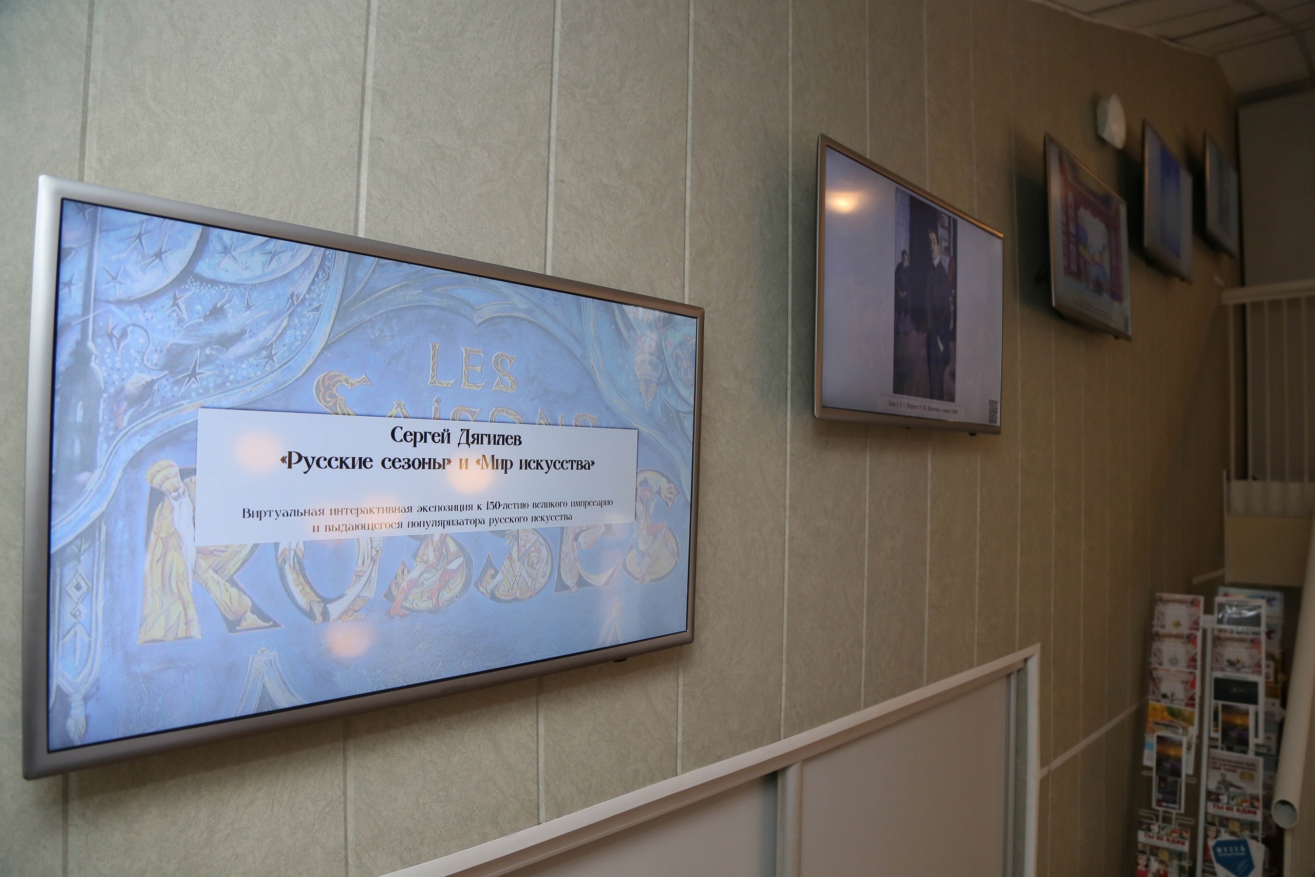 Отдельная часть оформления пространства медиатеки была посвящена деятельности Государственного Русского музея. Экспозиция состояла из трансляции видеофильма, посвященного 125-летию со дня открытия музея, виртуальной интерактивной экспозиции «Сергей Дягиелв. Русские сезоны и Мир искусства», разработанной на основе виртуальной экспозиции Русского музея «Дягилев. Начало».