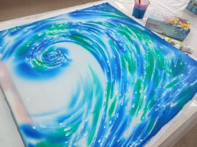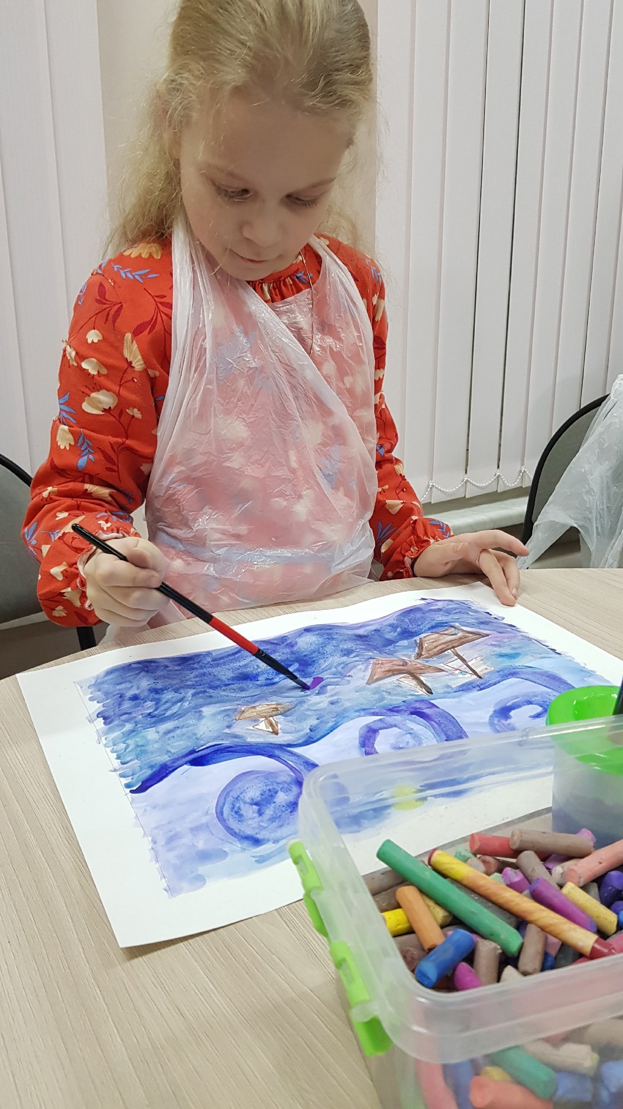 Очарованные морем посетители на творческой мастерской создают свои марины маркерами, акварелью или углем.