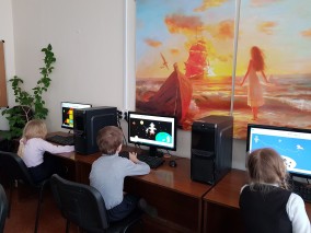 Во время занятий ребята ознакомились с произведениями из раздела Космос, опубликованные в межмузейной виртуальной выставке «100 лет СССР»", раздел «Космос». Более подробно рассмотрены произведения Цыбасова М.П. «Внеземная станция», «Освоение луны», Бурак А.Ф. «Возвращение. Посадка «Восхода-2», Жбанова А.М. «Гагарин – сын Родины», Леонова А.А. «Утро Алтая», Соколова А.К. «Стартует Восток. Поехали».