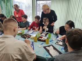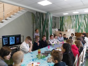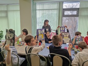 Затем учащиеся выполнили творческое задание, подготовленное воспитателями ГБДОУ детского сада №31 Е. А. Сидоровой и А. В. Левиной. Дети гуашью нарисовали белых медведей и исполнили шуточный танец.