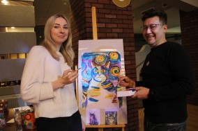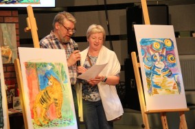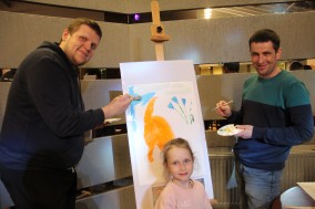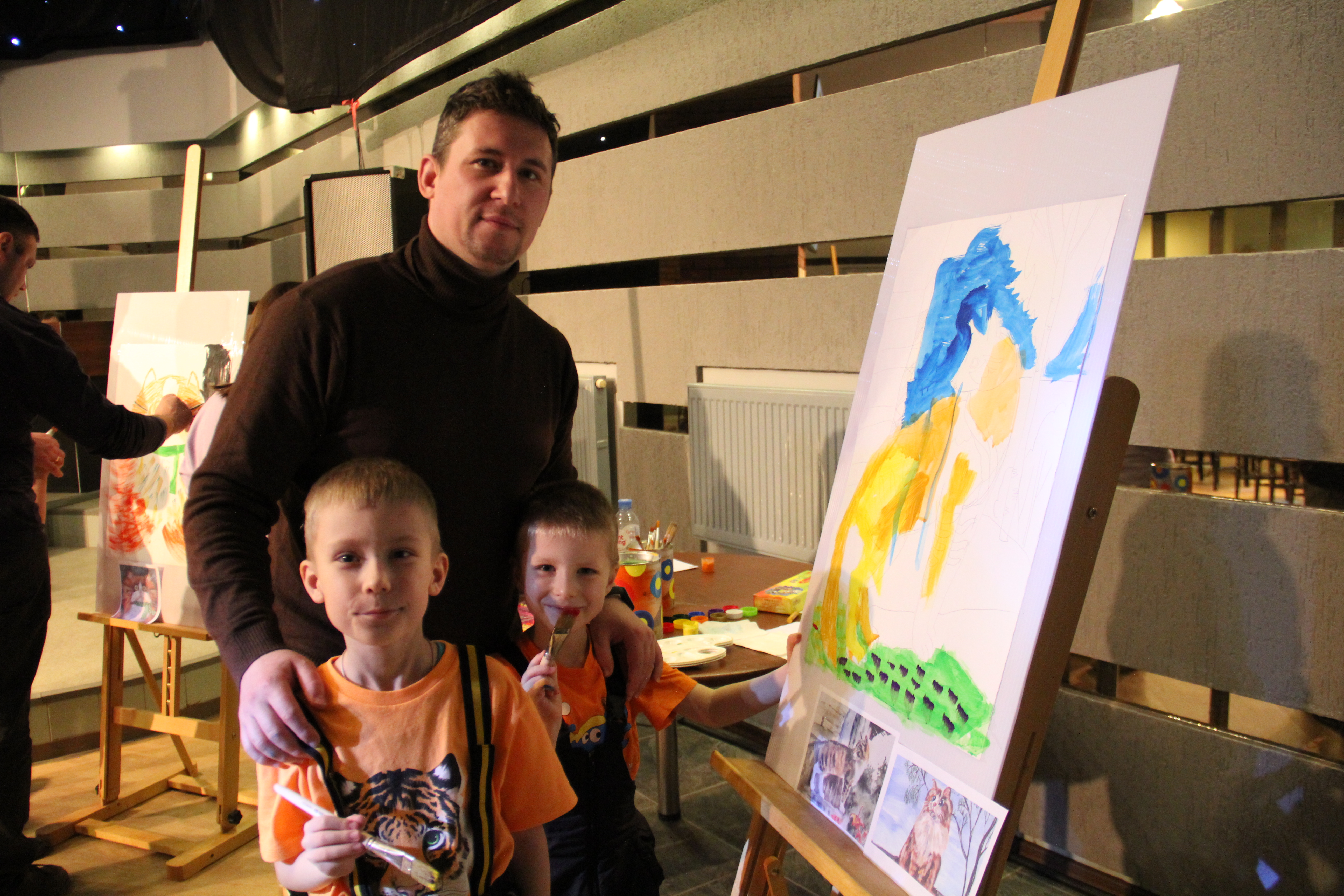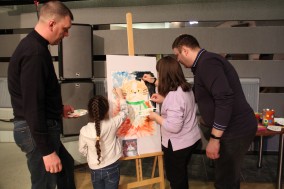 А мы поставили перед собой задачу, чтобы  все получили огромное удовольствие от процесса рисования ;  за 25 минут создать «шедевр», который станет не только украшением, но  экспонатом выставки,   родителям  снять усталость после трудового дня, а детям поднять настроение и самооценку.