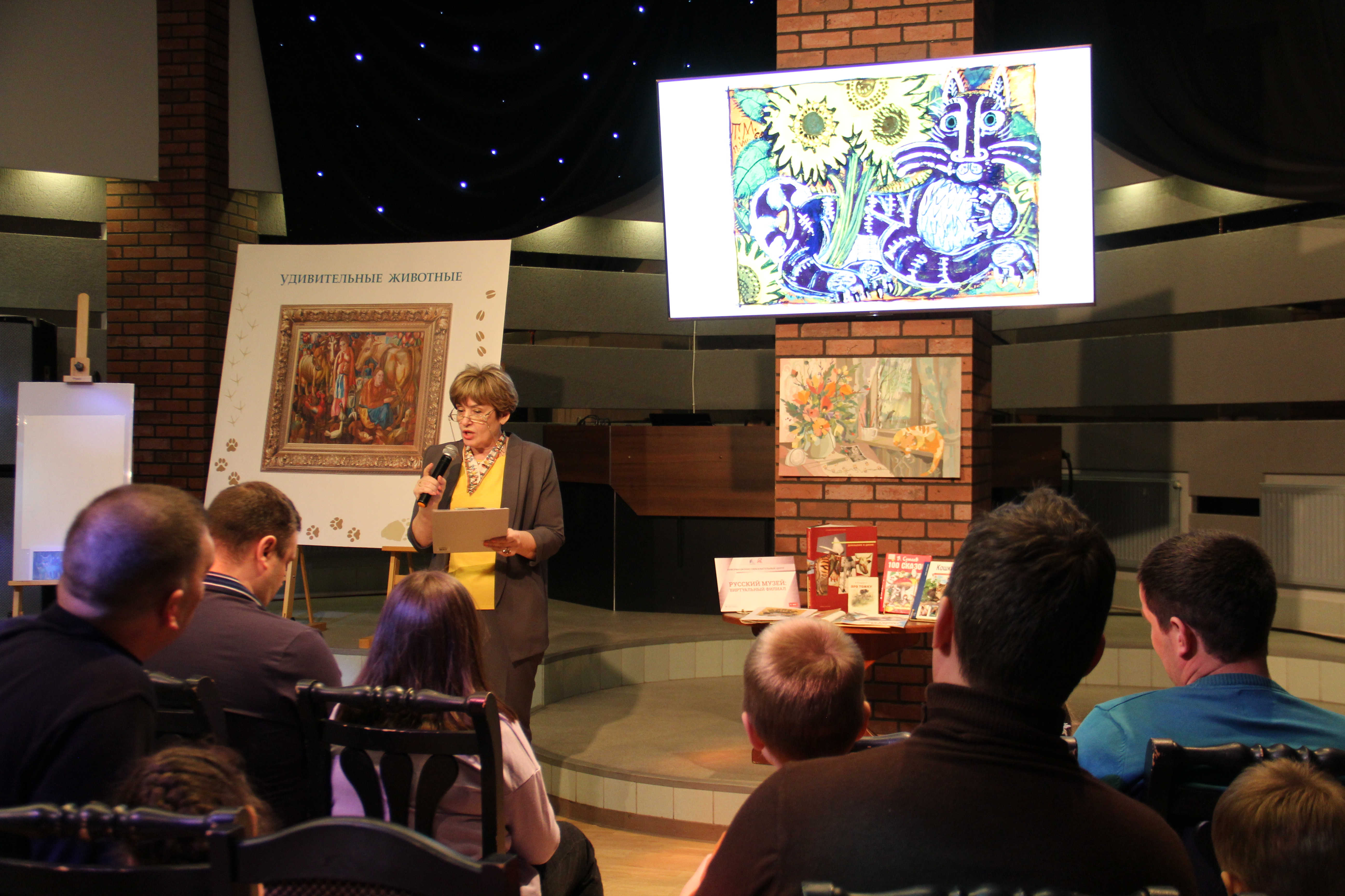 В центре «Русский музей: виртуальный филиал» прошла встреча «Коты для умножения доброты» для работников  предприятия и детей. Встречу с картинами  о животных из  коллекции Русского музея провела методист виртуального филиала Анна Лазутина.