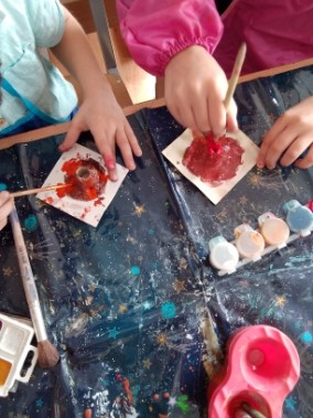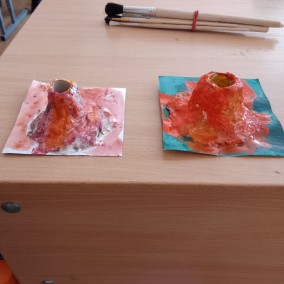 В заключение мероприятия дети раскрасили вулканы, сделанные из соленого теста.