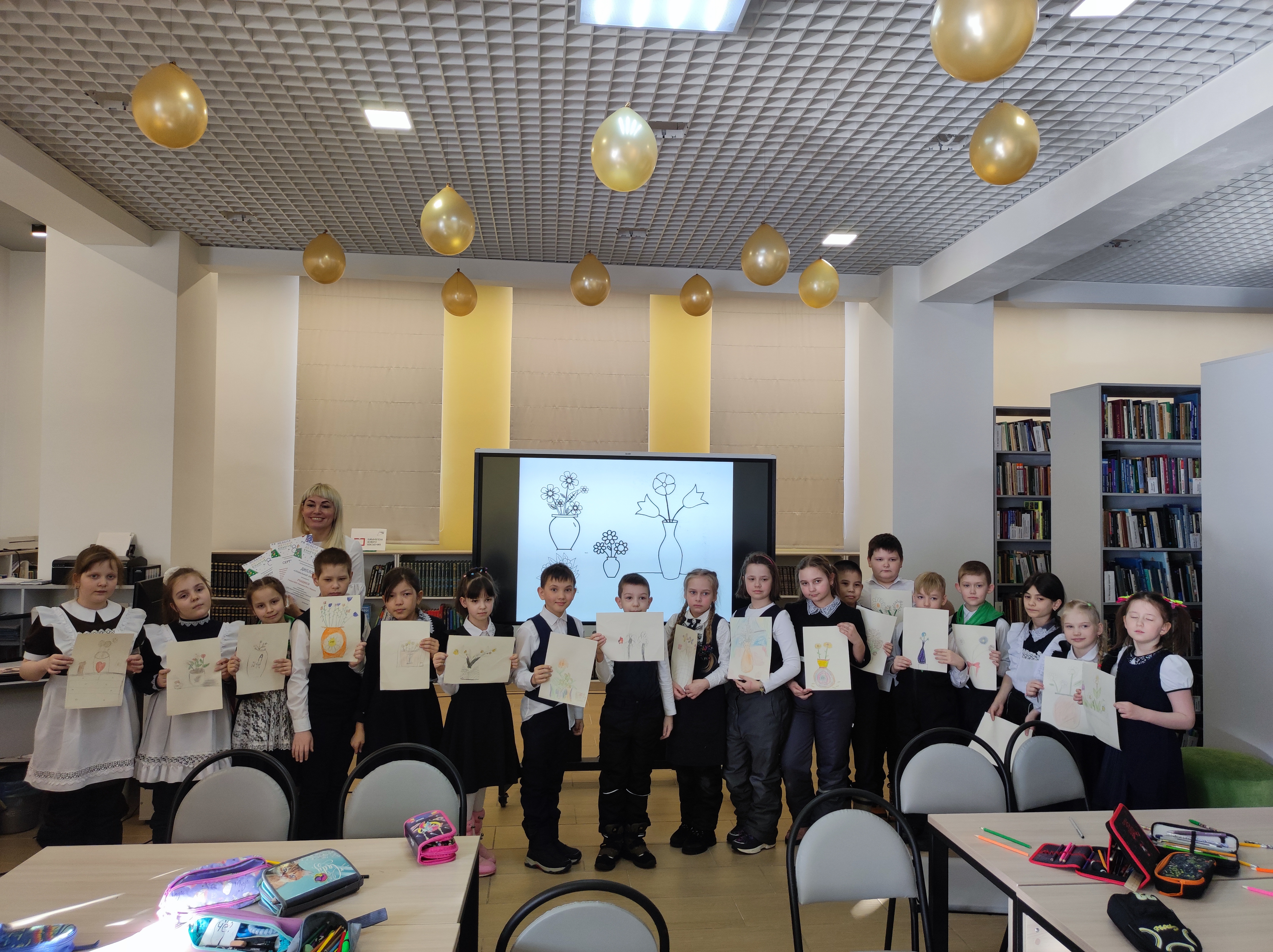 3 апреля 2023 года в Центральной городской библиотеке им. А.С.Пушкина, состоялось занятие "В страну музеев вместе с Фафалей. Весенний букет". Участниками мероприятия стали учащиеся 2 класса. В начале для ребят была проведена информационная часть о центре "Русский музей: виртуальный филиал". Была проведена беседа о цветах, затем дети активно отгадывали загадки. Далее мы посмотрели фильм из медиатеки Русского музея на тему "Букет". В последствии мы стали рисовать весенний букет, подвели итог нашего занятия и сфотографировались на память.