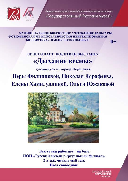 Информационно – образовательный центр «Русский музей: виртуальный филиал», расположенный на базе библиотеки имени Батюшковых, представляет вниманию зрителей выставку "Дыхание весны".