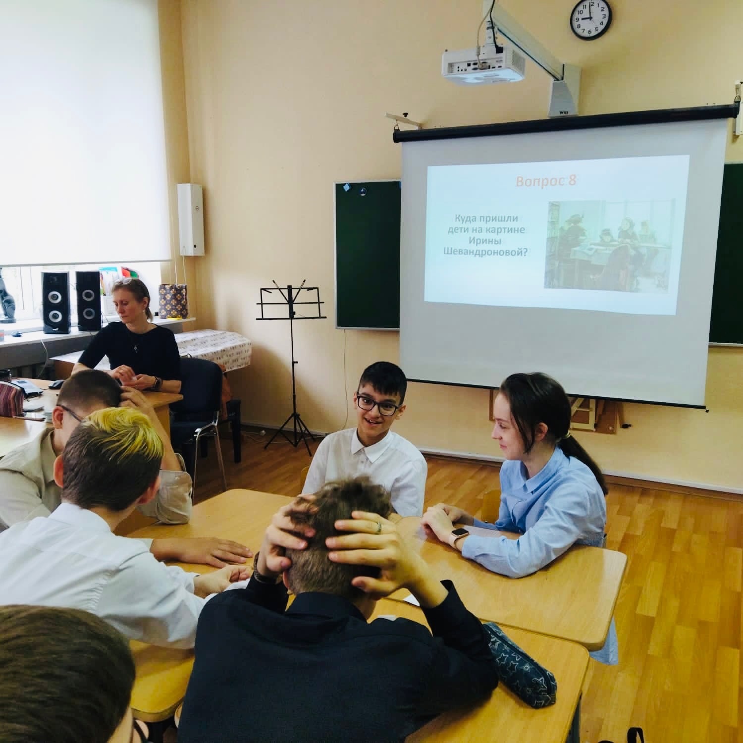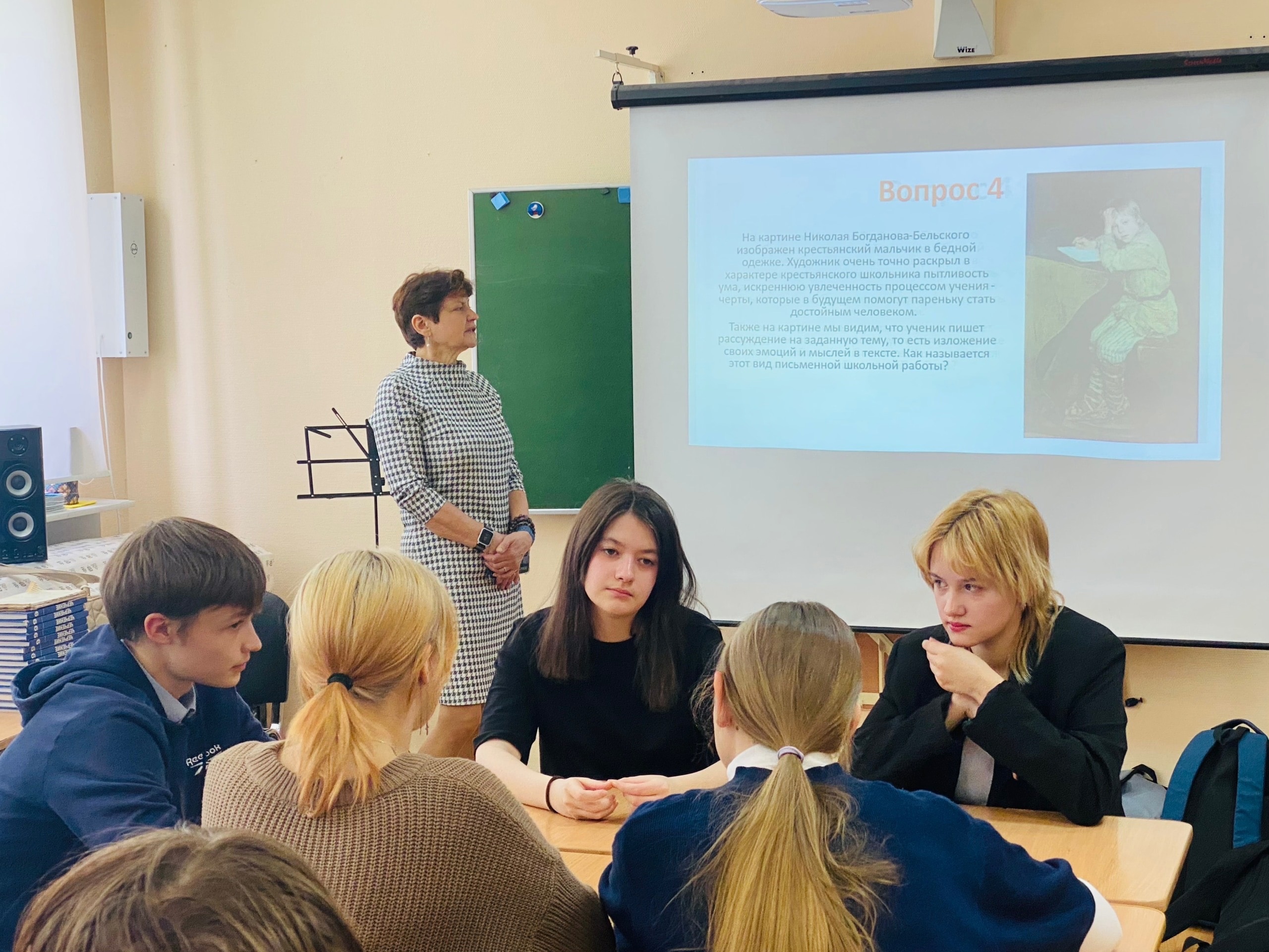 В рамках Международного дня музеев гимназисты участвовали в Квесте «Школа и школьники в картинах русских художников». Тема выбрана не случайно, 2023 год объявлен годом педагога и наставника, а накануне у нас отмечался день музеев. Квест подготовила Шитухина Виктория Васильевна, а ведущей стала Мосина Екатерина Витальевна. Ребятам необходимо было ответить на 20 разнообразных вопросов о картинах и художниках, о видах и жанрах изобразительного искусства, о героях картин и их занятиях. Ребят заинтересовали картины Богданова-Бельского, «Сочинение», «На пороге школы», им захотелось узнать, почему художник на многих своих картинах изображал сельскую школу и учеников. Возможно потому, что он сам учился в народной школе у замечательного Сергея Александровича Рачинского - российского педагога и учёного, который оставил неизгладимый след в судьбе художника.