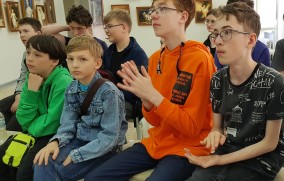 В Виртуальном филиале Русского музея с помощью современных технологий ребята разглядели в мельчайших деталях живопись и графику «Пушкинианы». Например, единственную — поэтому особенно ценную — работу Ивана Айвазовского в собрании Государственного Русского музея, посвященную пушкинской теме. Ребят поразил «Пушкин на вершине Ай-Петри при восходе солнца»: герой дня на картине снял шляпу, приветствуя красоту природы.