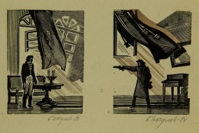 Интерес художников-иллюстраторов к произведениям А.С. Пушкина появился сразу после выхода в свет его книг. Однако при жизни Александра Сергеевича было напечатано всего 19 иллюстраций и, по мнению искусствоведов, они «носили случайный характер и не были адекватны художественному уровню поэта». Известно, что первая печатная иллюстрация к произведениям Пушкина - фронтиспис к поэме «Руслан и Людмила», в котором представлена комбинация из пяти рисунков с изображениями главных героев и основных сцен.