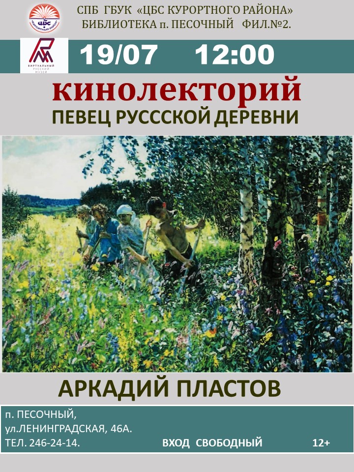 Аркадий Пластов - известен как автор жанровых картин, в основном написанных на пленэре, пейзажей и многочисленных портретов деревенских жителей - своих односельчан. Ключевыми можно назвать холсты 1945 года "Жатва" и "Сенокос", а также цикл "Люди колхозной деревни" - они пронизаны искренне поэтическим восприятием русской природы и живущих в неразрывной связи с ней людей села.