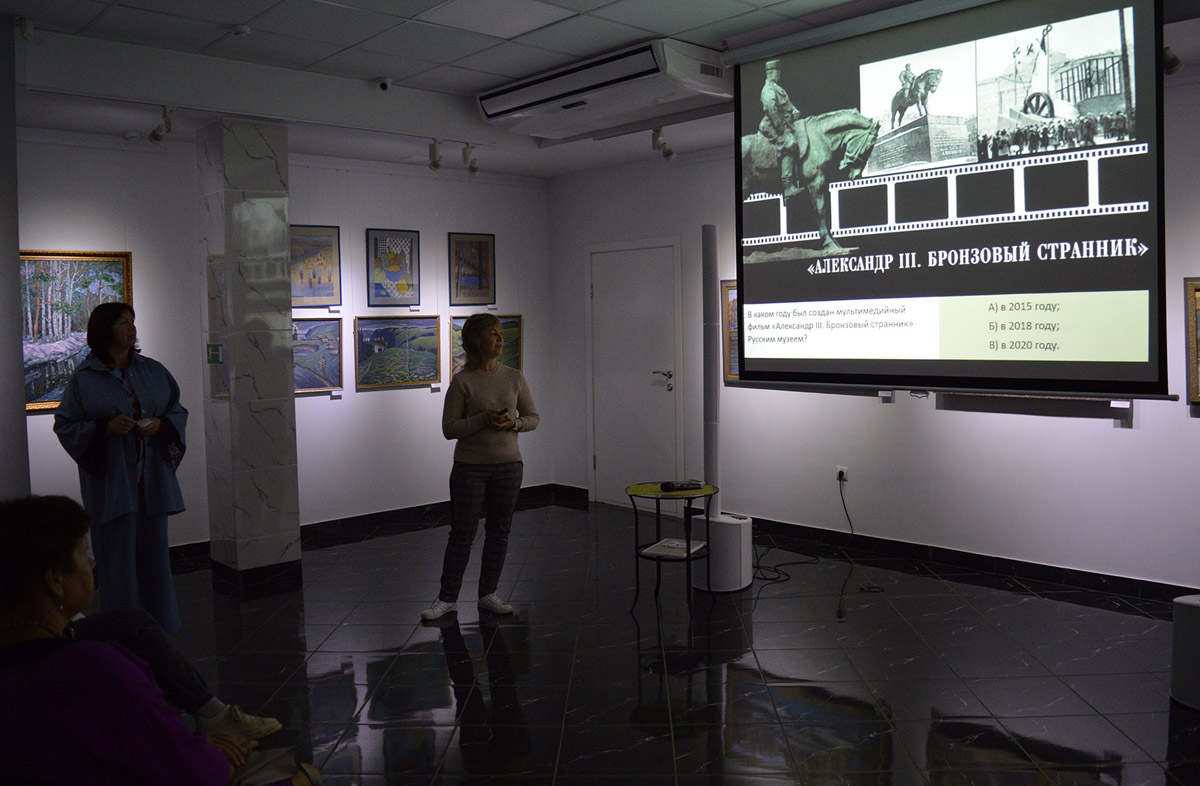 Вечер продолжил показ мультимедийного фильма «Александр III. Бронзовый странник» – об истории памятника императору Александру III скульптора Паоло Трубецкого из серии познавательных программ Государственного Русского музея, виртуальный филиал которого находится в Новокуйбышевске. Узнав подробно о работе информационно-образовательного центра «Русский музей: виртуальный филиал», гости ответили на вопросы викторины, победители которой получили в подарок сувениры. А завершился вечер просмотром российского семейного комедийного фильма режиссёра Дмитрия Дьяченко об ушастом зверьке по имени Чебурашка, который попадает в новый мир.