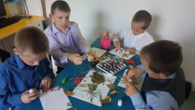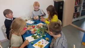 В течение месяца ребята готовили материалы для своих поделок: делали заготовки из сухих листьев, собирали шишки и веточки, знакомились с литературой из фонда библиотеки, в которой представлены различные техники и примеры изготовления поделок из природного материала. В медиатеке виртуального филиала Русского музея всем участникам мастер-класса были представлены видеофильмы, где  были запечатлены осенние пейзажи русских художников. Вместе с сотрудником виртуального филиала дети создавали яркие и красивые картины, букеты, сюжетные истории. Работы участников были представлены на выставке, чтобы каждый посетитель мог полюбоваться ими и выразить свое восхищение.