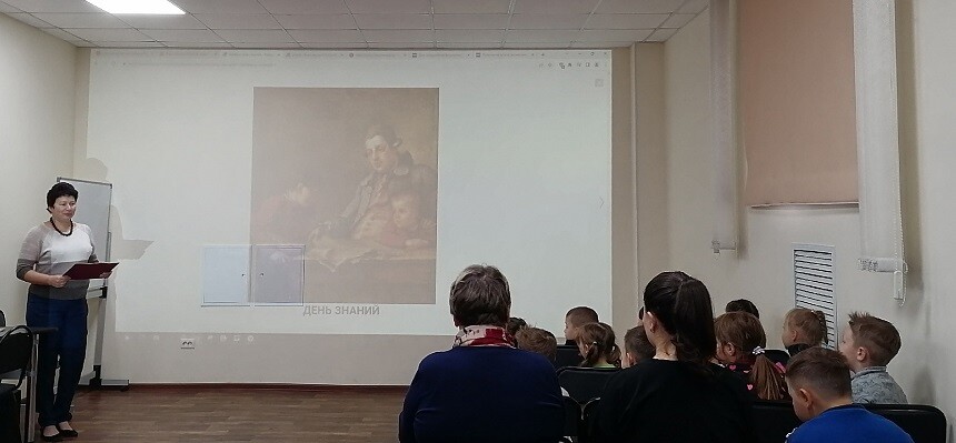 Дошкольники познакомились с произведениями из коллекции Русского музея, на которых изображены учителя и разные ученики – школьники, студенты. Дети с интересом рассматривали картины, ведь ученики, изображённые на них, совсем не похожи на сегодняшних школьников, а классы совсем не такие, в каких учатся ребята теперь. Потом юные посетители отгадали загадки о школе и сказали, что учиться  надо обязательно.
