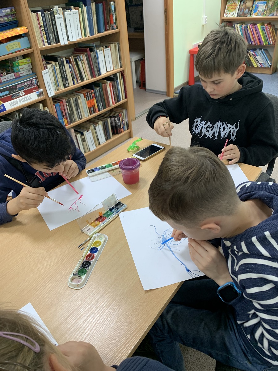 Для посетителей виртуального филиала Русского музея на базе Приморской детской библиотеки было проведено творческое занятие "Кляксы" на основе мастер-класса из раздела медиатеки "В мастерской художника".