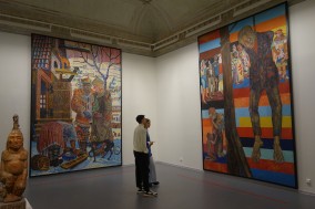 The current exhibition comprises four large panels from the show at the House of Press: Siberian Partisans by Yury Khrzhanovsky, Execution of a Revolutionary by Alevtina Mordvinova, A Worker Sitting at the Table by Eduard Tenisman and The Old and the New Way of Life by Sophia Zaklikovskaya.