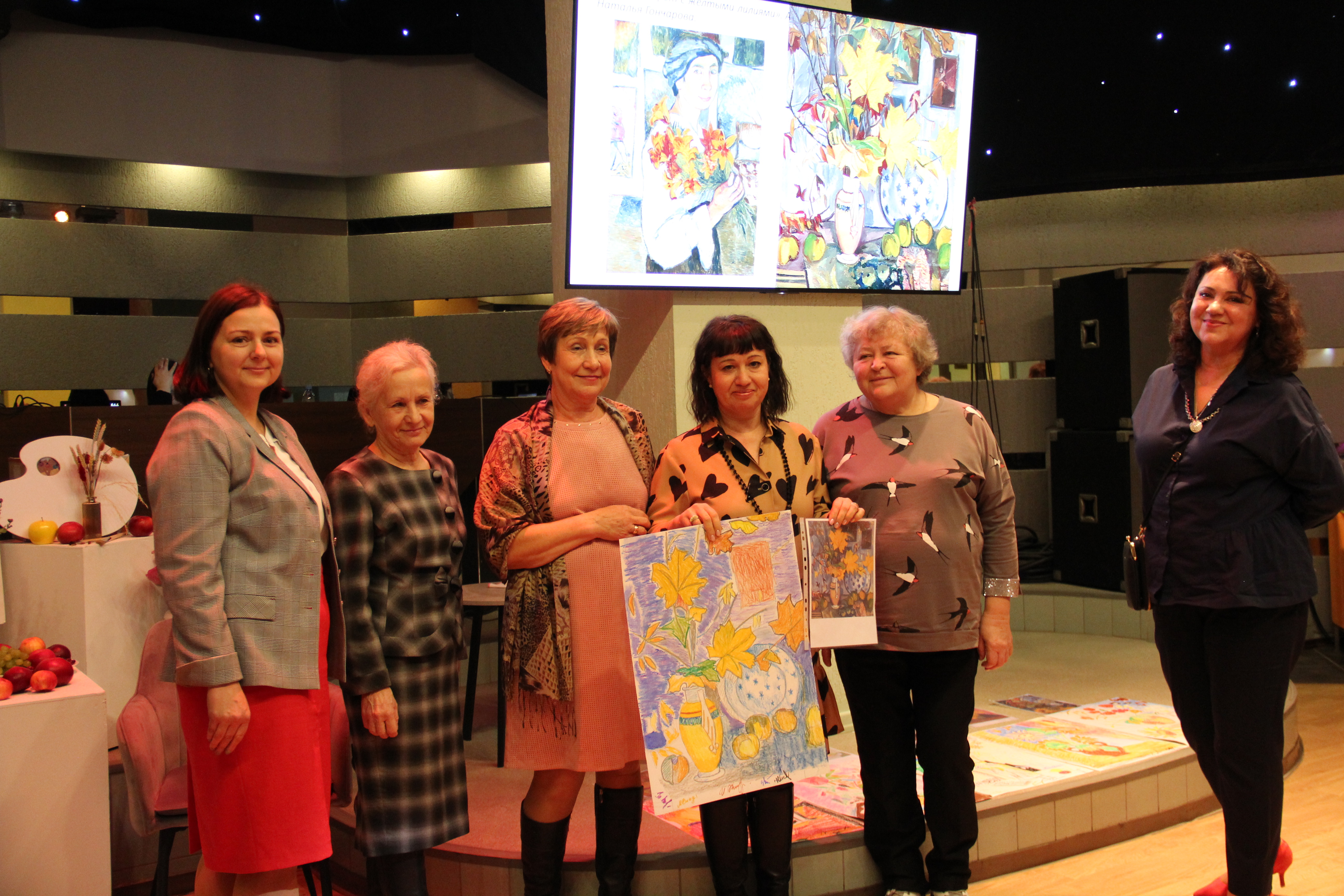 Попробовать себя в новой профессии – художник, мы предложили нашим гостям; вдохновило на эту идею декоративная живопись Натальи Гончаровой. По мотивам ее картин, участники встречи не побоялись пробовать новые материалы и большие форматы. Работы получились творческие с изюминкой, благодаря совместной и слаженной работе в команде.