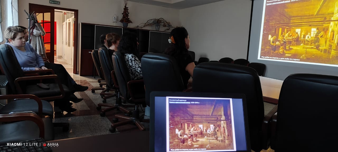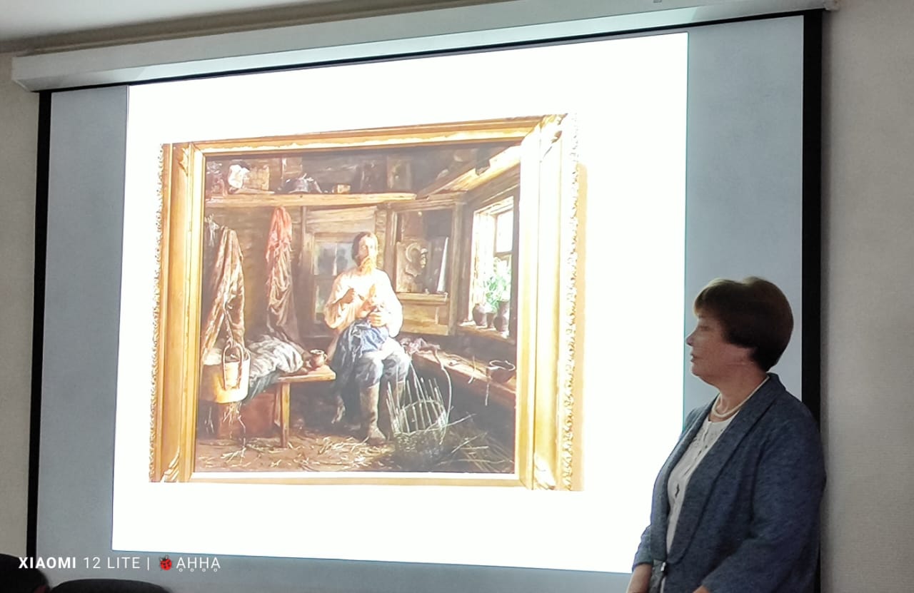 Показали, как правдиво и талантливо художники воплощают мир русской деревни, живописное бытие крестьянской  жизни,  сезонные  работы, редкие праздники  и  минуты  отдыха , постоянные заботы о детях,  о хозяйстве, о родной земле.