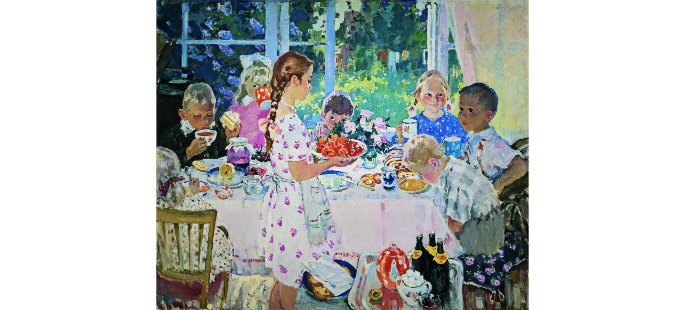 Переходя из зала в зал в виртуальном пространстве выставки, зритель под руководством экскурсовода сможет увидеть редко экспонирующиеся произведения таких известных художников, как И.Н.Крамской, В.Е.Маковский, И.М.Прянишников, К.В.Лемох, В.М.Максимов, А.И.Корзухин, Ф.А.Малявин, Б.М.Кустодиев, Ю.П.Кугач, Т.Н.Яблонская, литографии Б.Н.Ермолаева и малоизвестные произведения из музейного собрания, передающие поэтику спокойного течения жизни в семейном кругу.