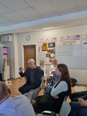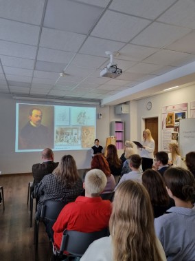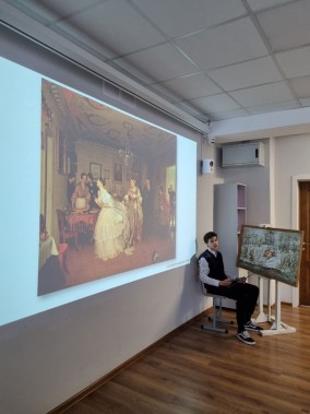 Ученики 10-х классов вместе с руководителем ИЦ «Русский музей: виртуальный филиал» Еленой Николаевной Киселëвой и учителем русского языка и литературы Ольгой Павловной Подсевак говорили о связи литературы, истории и искусства, узнали много нового о жизни выдающегося русского художника, его творчестве.