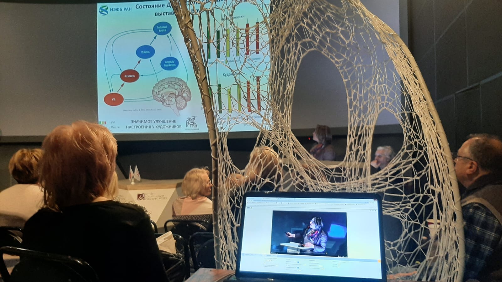 О полученных данных эксперимента и визуализации их в мультимедийной экспозиции в онлайн-презентации из Центра мультимедиа 17 ноября рассказали ведущий научный сотрудник ИЭФБ РАН, кандидат биологических наук Наталья Вячеславовна Шемякина и зав.отделом «Центр мультимедиа Русского музея» Светлана Владимировна Бирюкова, а также Стафеев Сергей Костантинович, д. т. н., профессор, сотрудник международной лаборатории «Нейрофизиология виртуальной реальности», сотрудник международной лаборатории «Нелокальная плазма в нанотехнологиях и медицине», и Шелепин Константин Юрьевич, к.м.н., сотрудник лаборатории психофизиологии речи Института физиологии им. И.П. Павлова РАН. В этот день выставка была открыта для гостей Санкт-Петербургского культурного форума.