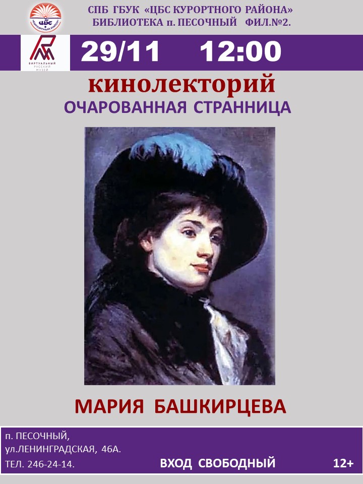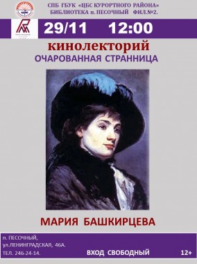 Мария Константиновна Башкирцева (24 ноября 1858, село Гавронцы, Полтавская губерния – 31 октября 1884, Париж) – украинская и русская художница, одна из первых женщин, учившихся в Академии Жюлиана в Париже, талант и успех которой был отмечен на парижских Салонах. Ее картины висят в лучших музеях мира, а знаменитым «Дневником», который Мария вела с 12 лет, зачитывались лучшие умы эпохи. Премьер-министр Англии Уильям Гладстон в одной из своих публикаций в 1890 году назвал «Дневник» Башкирцевой одной из самых замечательных книг XIX века. Марина Цветаева, потрясенная дневником Башкирцевой, посвятила ей свой первый сборник стихов.