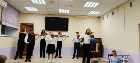 Затем праздник продолжился выступлением юных скрипачей из Санкт-Петербургской музыкальной школы №7 Выборгского района. Учащиеся представили программу, в которой прозвучали народные песни и классические произведения, передающие дух и настроение не только разных регионов России, но и мира.