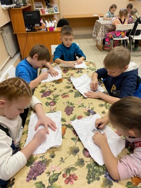 Дети посмотрели произведения русских художников, хранящиеся в Русском музее, вспомнили чем рисуют художники как создают свои картины. Вопрос, поставленный ребятам на занятии, о том кто же научил человека рисовать не остался без ответа, дети отвечали, что человека научили рисовать родители, а родителей бабушки и дедушки, таким образом сделав вывод, что научили рисовать современных людей их предки. И в том как же это произошло дети и попытались разобраться.