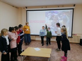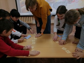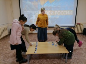 Итоговое занятие в программе «В мир русской культуры с Русским музеем» для учащихся 4 класса Солнечной СОШ "На пороге в мир искусства". Игровая программа включила все темы, по которым школьники занимались весь 2023 год. Ребята, проходя испытания в восьми турах игры, вспомнили и закрепили полученные знания. В туре "ты пришел в музей" говорили о правилах поведения в музеях и состязались в домино "Известные музеи России" (нужно было соединить изображение с названием музея). Тур "Так сказать" был посвящен художественным терминам, а тур "Матрешкино", познакомил участников с одноименной настольной игрой компании "Простые правила". Еще одна настолка была по теме "Картины русских художников" - это всем известная МЕМО. Еще два тура были по творчеству М. Врубеля и И. Билибина, а в заключительном туре "Тур скульптур", ребята изображали известные статуи, которые пыталась угадать соперники и учитель. Победителями стали обе команды - все они за этот год узнали очень много о русском искусстве с помощью Солнечной сельской библиотеки виртуального филиала Русского музея.