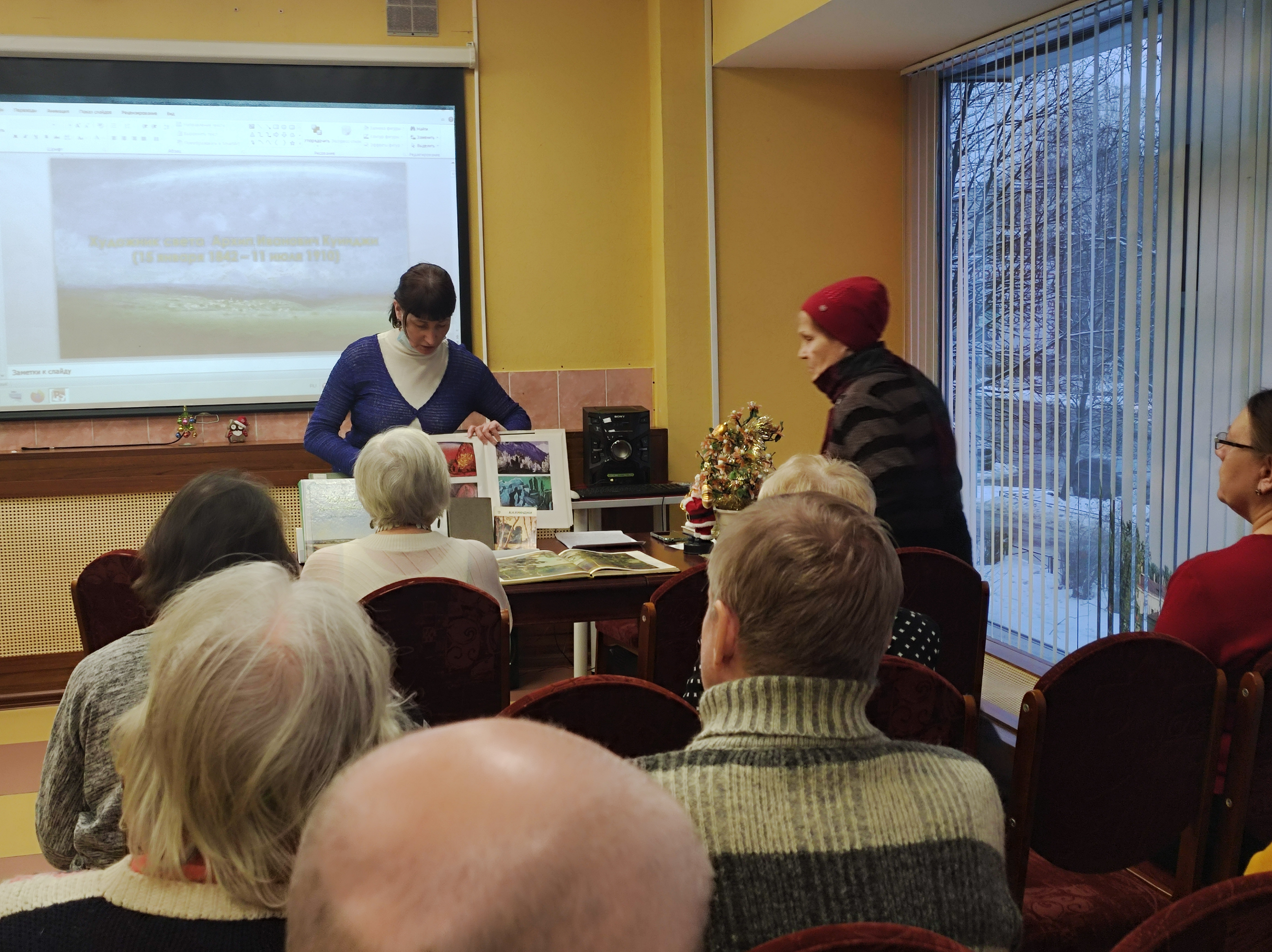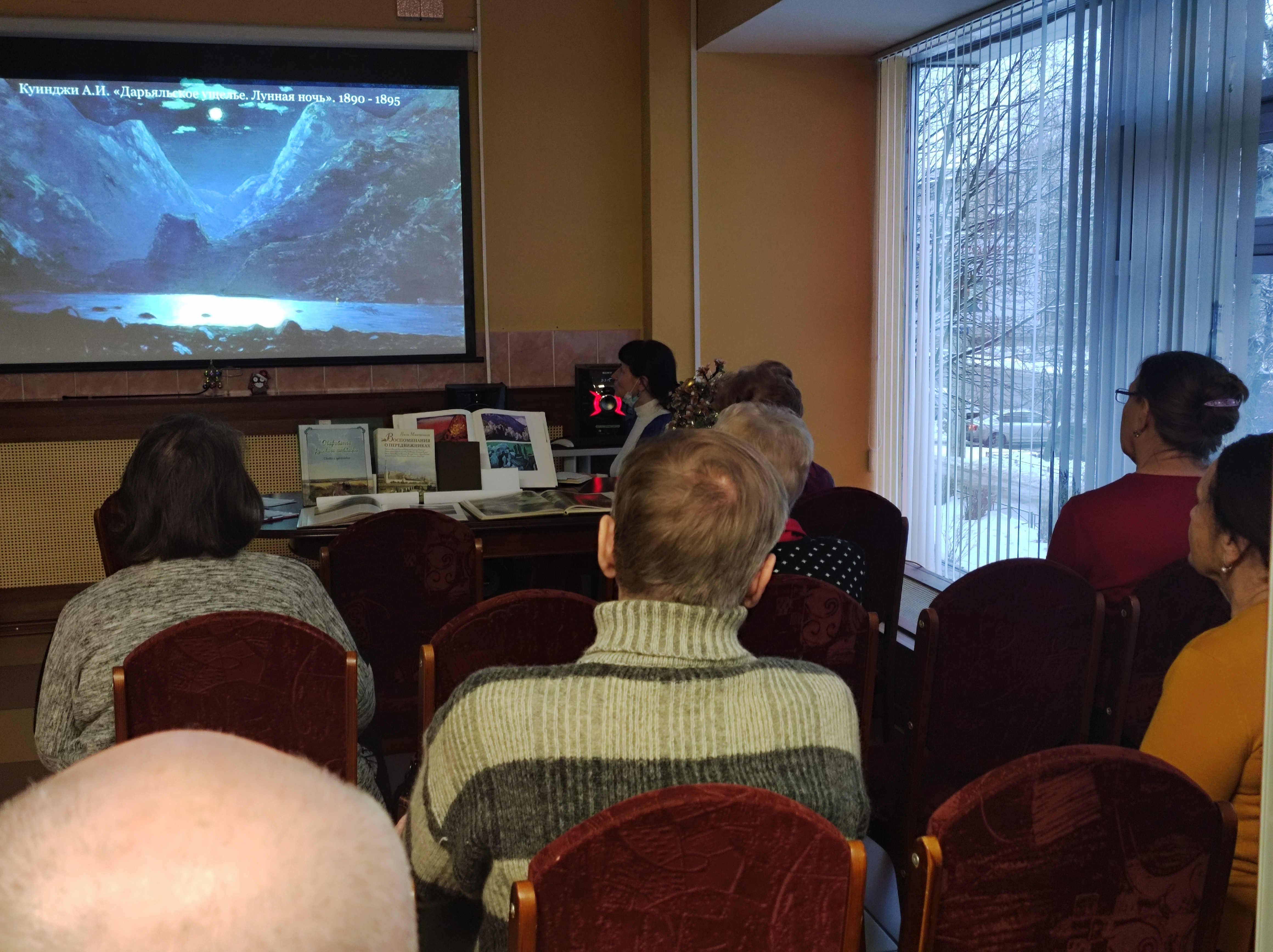 Также был проведен блиц-обзор книжной выставки, показан фильм из Медиатеки Русского музея ««Художник, солнце и лунный свет». Архип Куинджи» (онлайн курс «Я и картина») портала "Виртуальный Русский музей".