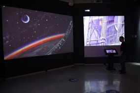 Мультимедийная инсталляция по мотивам картин космонавта Алексея Леонова, первого человека, совершившего выход в открытый космос, передает его потрясение и восторг от встречи со Вселенной. Многие из живописных работ космонавта были написаны им на основе набросков, сделанными цветными карандашами прямо во время полета или в минуты отдыха на борту космической станции. Мультимедийная композиция создана художниками Олегом и Еленой Заковряшиными и коллективом Центра мультимедиа Русского музея на основе картин Алексея Леонова из коллекции Музея космонавтики в Москве.