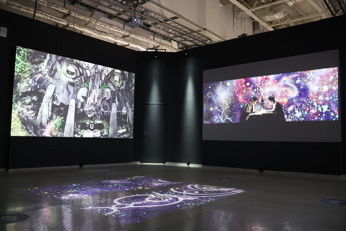 Встречает зрителей аудиовизуальная инсталляция «Космос» Дмитрия Матковского – музыканта и художника-синестета, который исследует мир через музыку, живопись и цифровые элементы дополненной реальности. Инсталляция, где происходит синтез цифрового и музыкального искусства, посвящена естественной эволюции жизни во Вселенной.