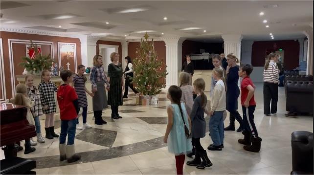 Юные участники детской фольклорной студии «Светелка» научили ребят петь праздничные колядки.