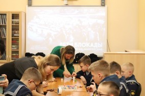 К 80-летию полного снятия блокады Ленинграда для воспитанников Севастопольского президентского кадетского училища лектор-искусствовед библиотеки Ксения Курочкина провела интерактивную мастерскую «Дети блокады»