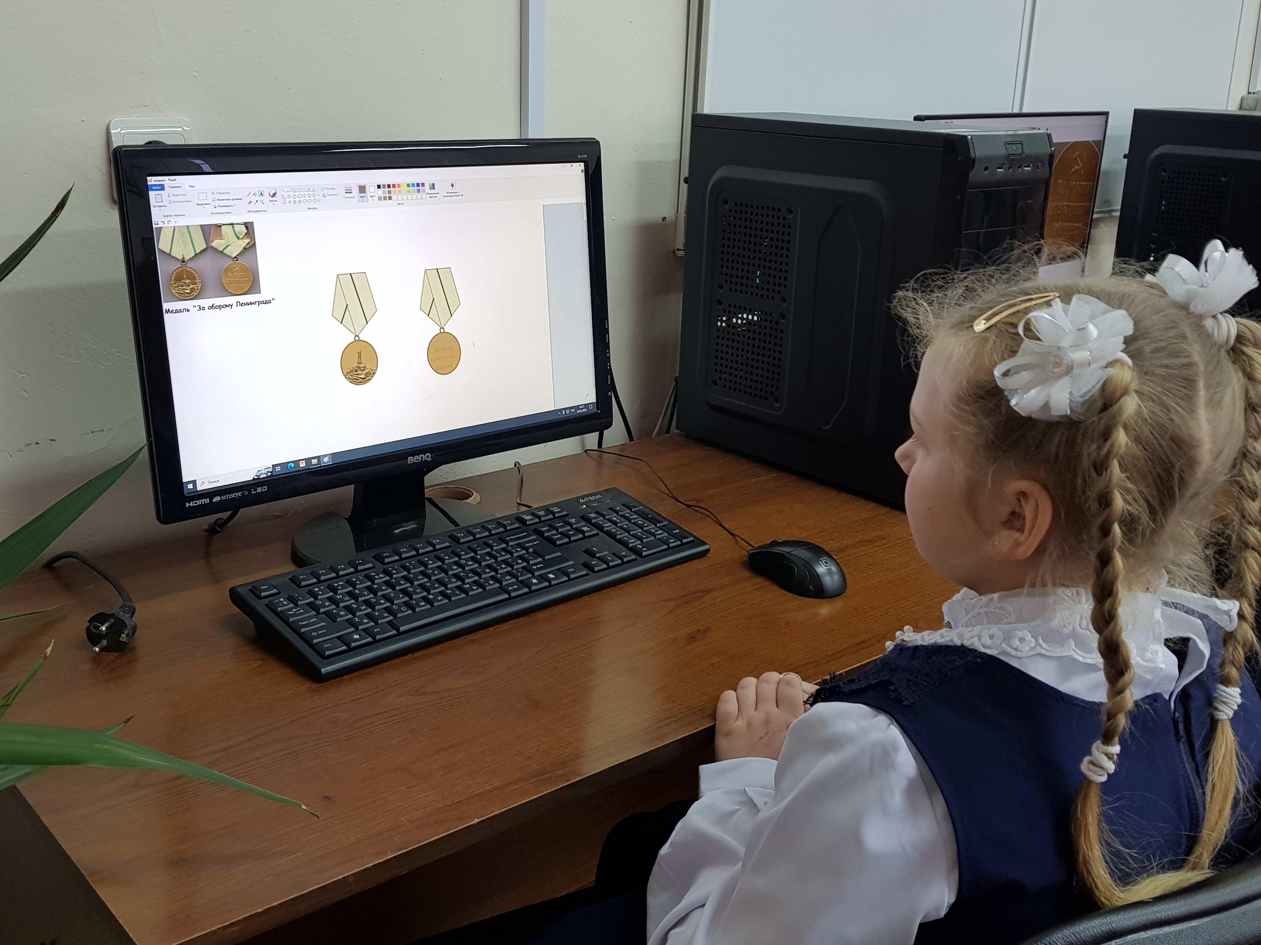 В практической части занятий ребята создавали в графическом редакторе медаль «За оборону Ленинграда».