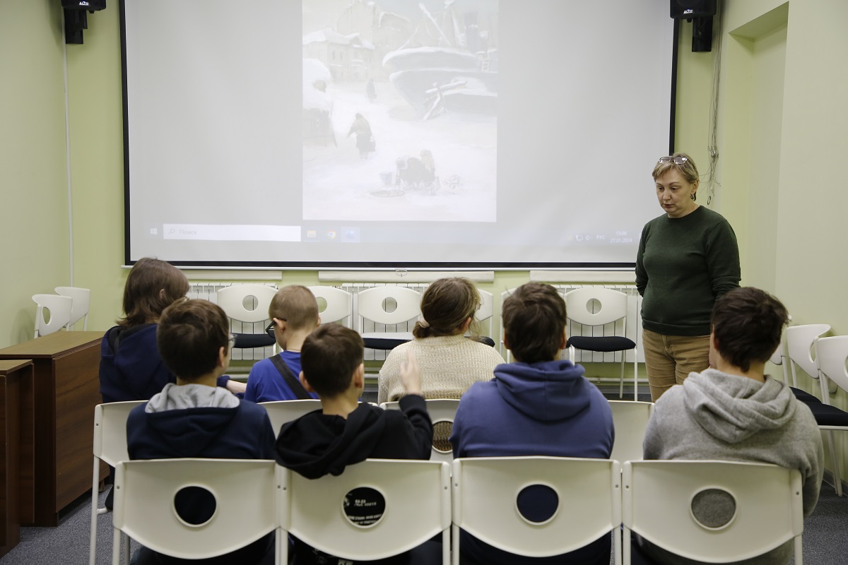 На занятии школьники услышали настоящие истории, рассказанные их ровесниками – детьми, оставшимися в блокадном городе, увидели произведения из коллекции Государственного Русского музея, наглядно демонстрирующие те дни. Участникам занятия также было рассказано, как жили люди в осаждённом городе, как спасали здания от зажигательных бомб, как сохраняли надежду и веру в победу.