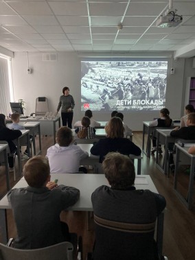 На мастерской учащиеся 6 класса услышали настоящие истории, рассказанные их ровесниками – детьми, оставшимися в блокадном городе, увидели произведения из коллекции Русского музея, по преимуществу, рисунки, созданные совсем еще юными художниками и профессиональными мастерами во время Блокады Ленинграда, документальные фотографии. Как жили дети, работали ли школы и детские сады в осажденном городе, как отмечали Новый год, о чем думали и мечтали. Ребята вместе с учителями посмотрели отрывки из фильма, снятого в 1944 году «Жила - была девочка».