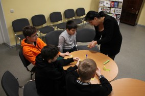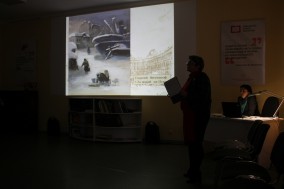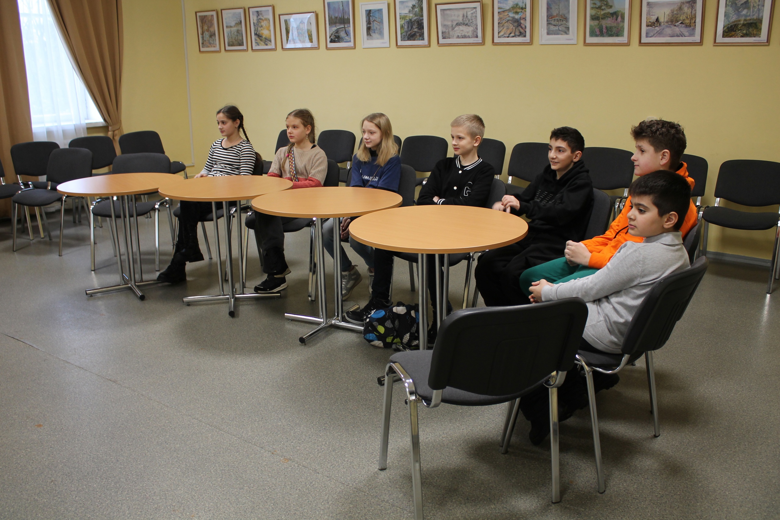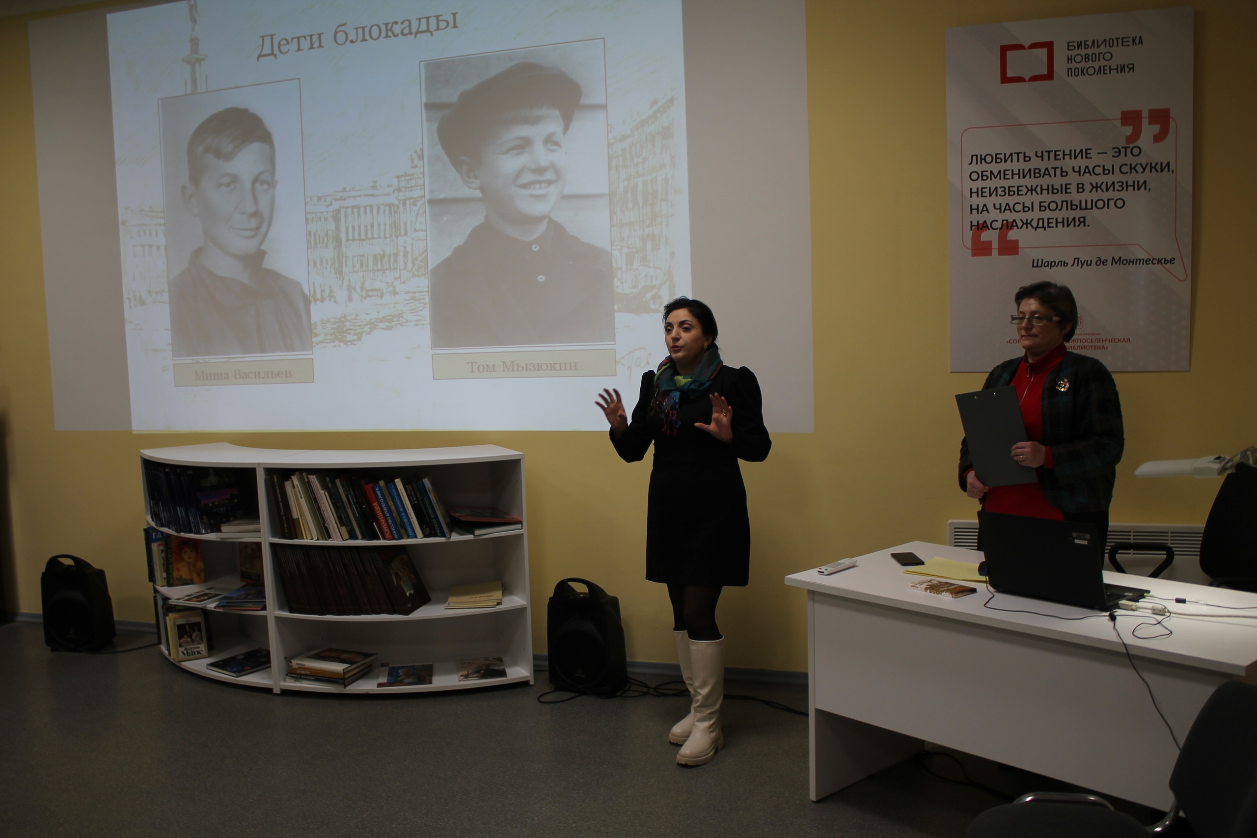 В первой части мастерской ребята заслушали рассказ, подготовленный заведующим отделом обслуживания Алевтиной Юрьевной Леонтьевой, о детях блокады, увидели произведения из коллекции Русского музея, созданные совсем ещё юными художниками и профессиональными мастерами во время блокады, документальные фотографии, посмотрели отрывки из художественного фильма «Жила – была девочка».